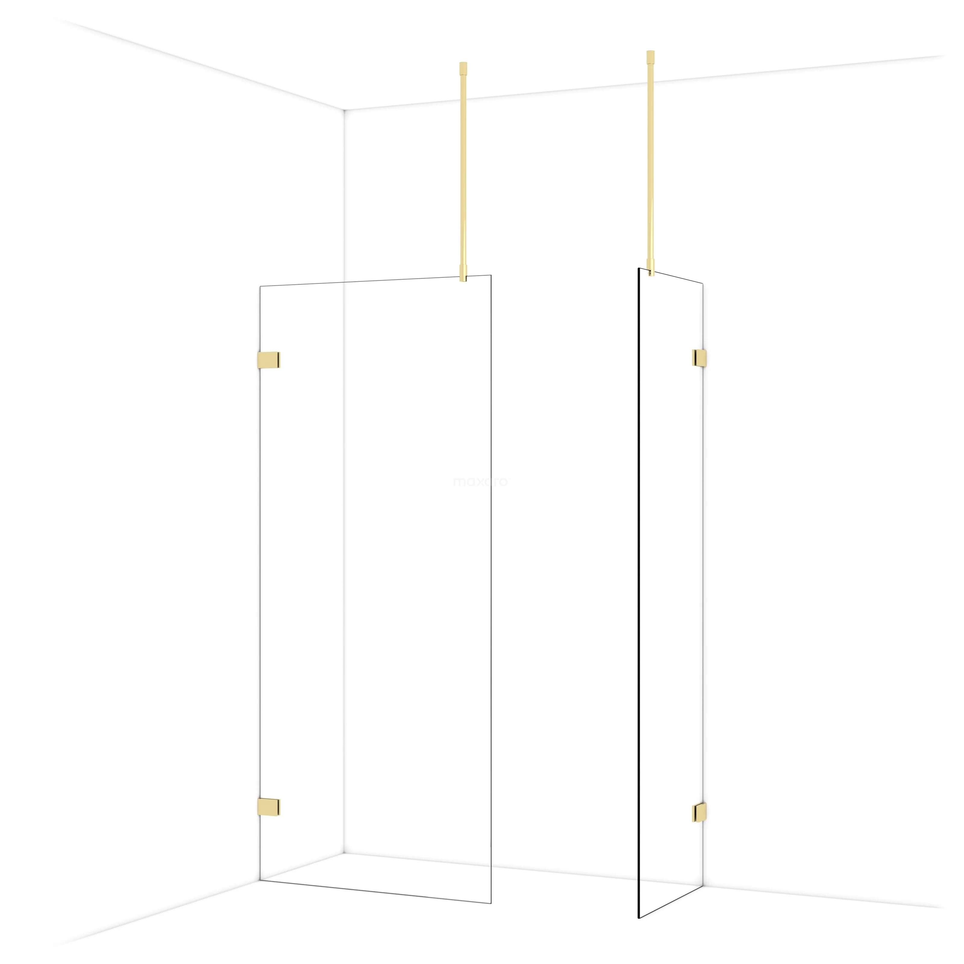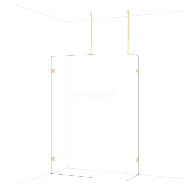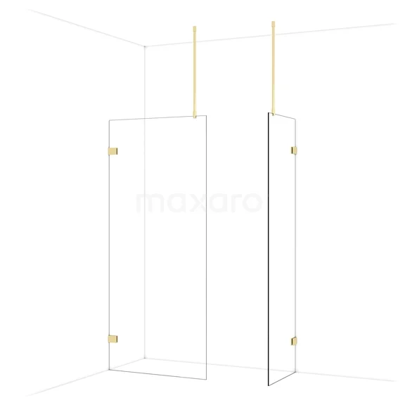 Diamond Walk-in shower | 90x60 cm Shiny light gold Clear glass 2 fixed walls
