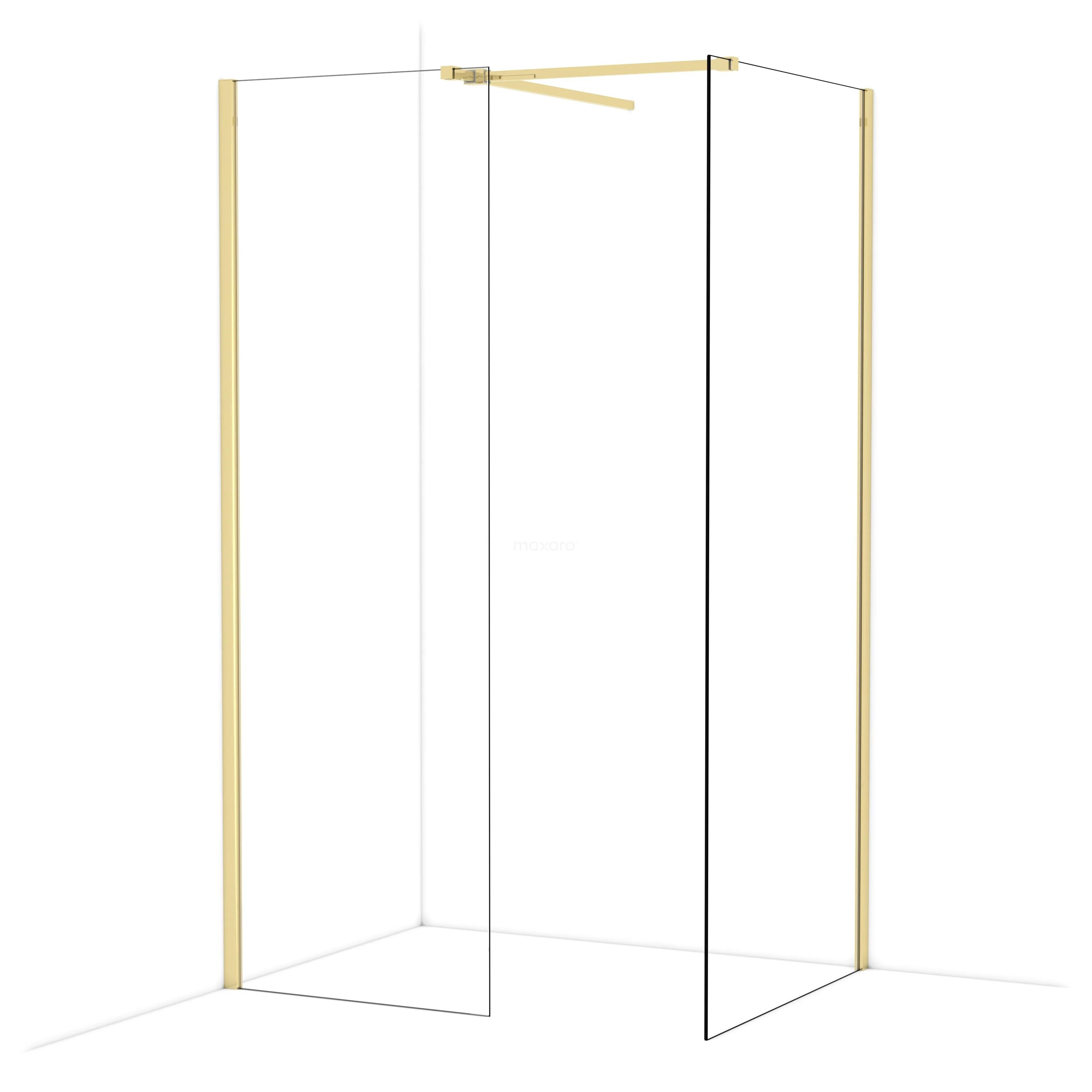 Diamond Walk-in shower | 90x70 cm Shiny light gold Clear glass 2 fixed walls