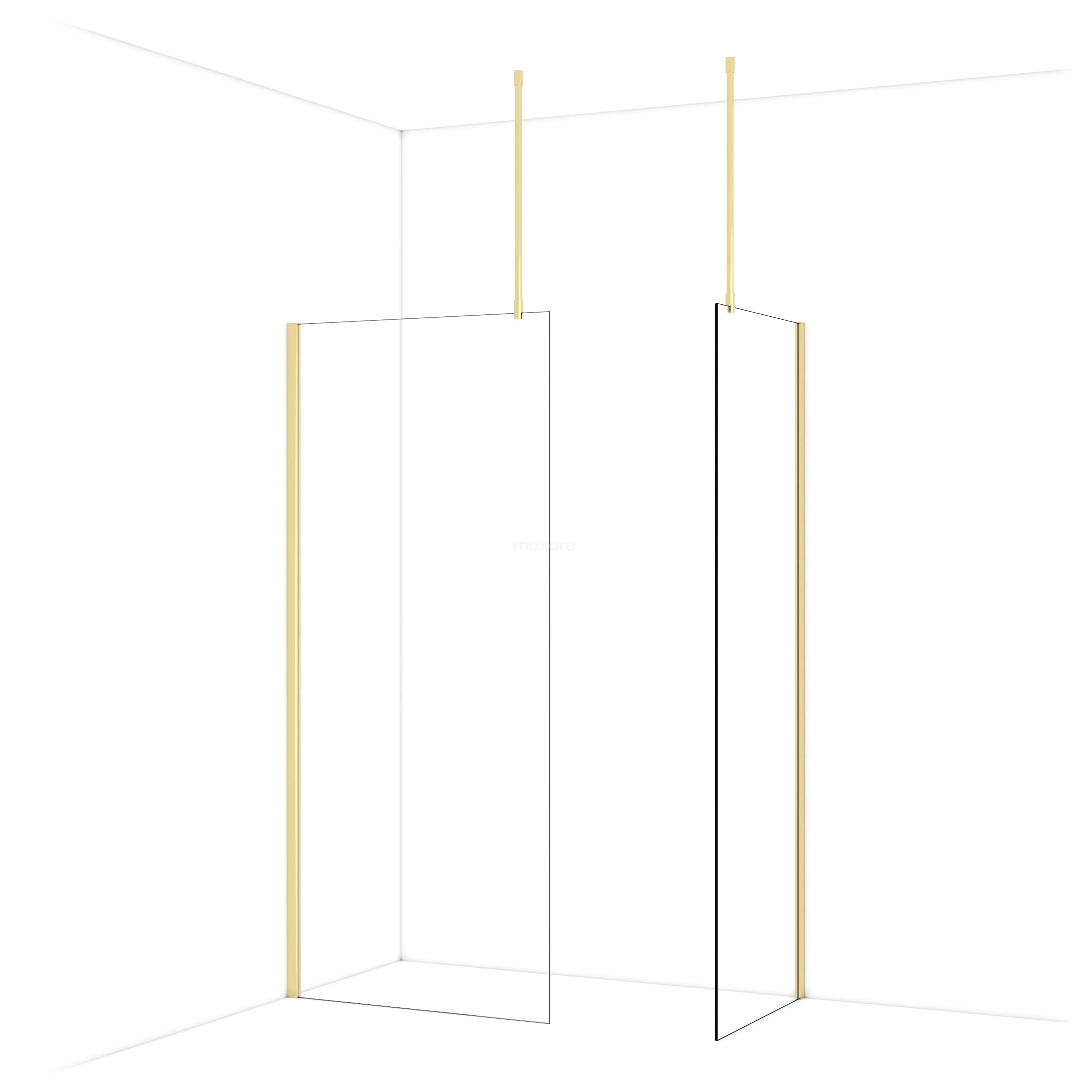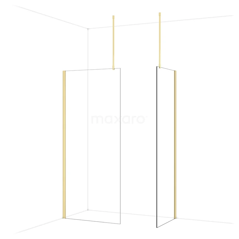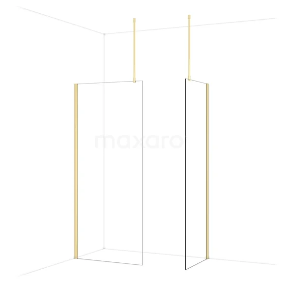 Diamond Walk-in shower | 90x70 cm Shiny light gold Clear glass 2 fixed walls