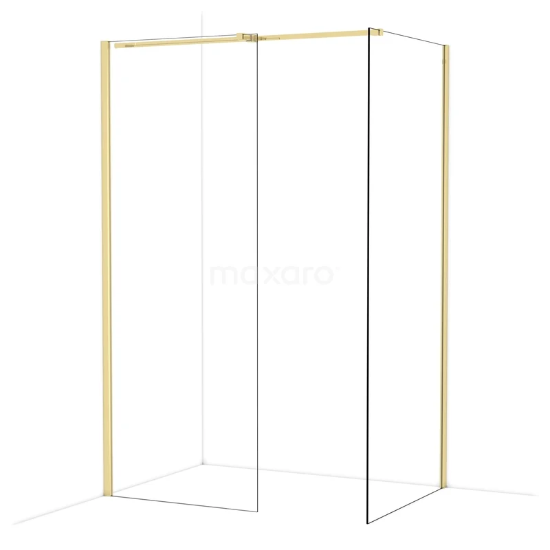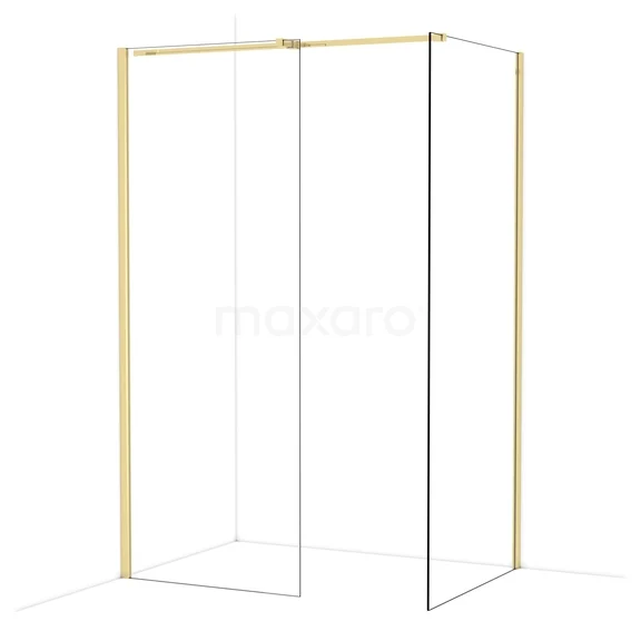 Diamond Walk-in shower | 90x80 cm Shiny light gold Clear glass 2 fixed walls