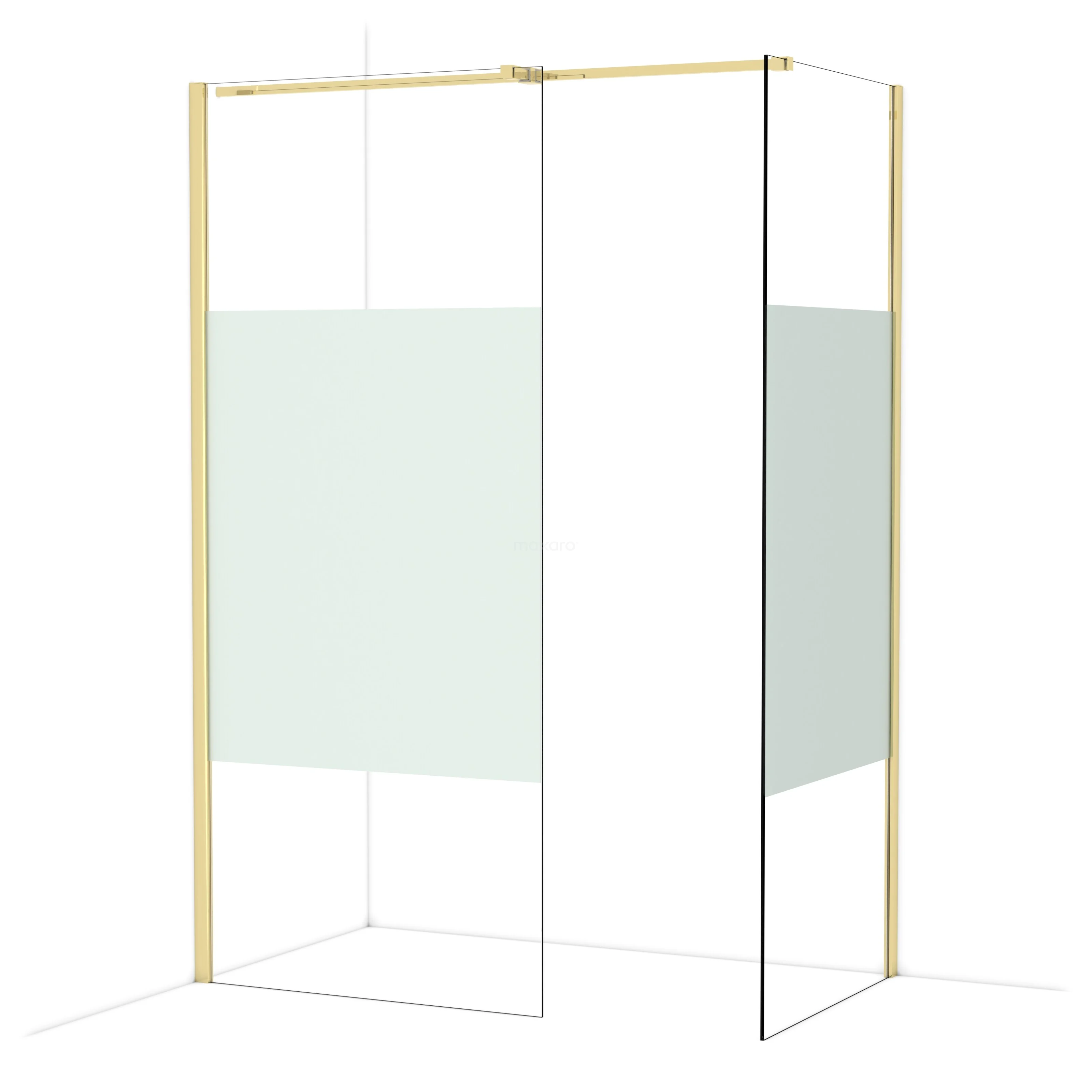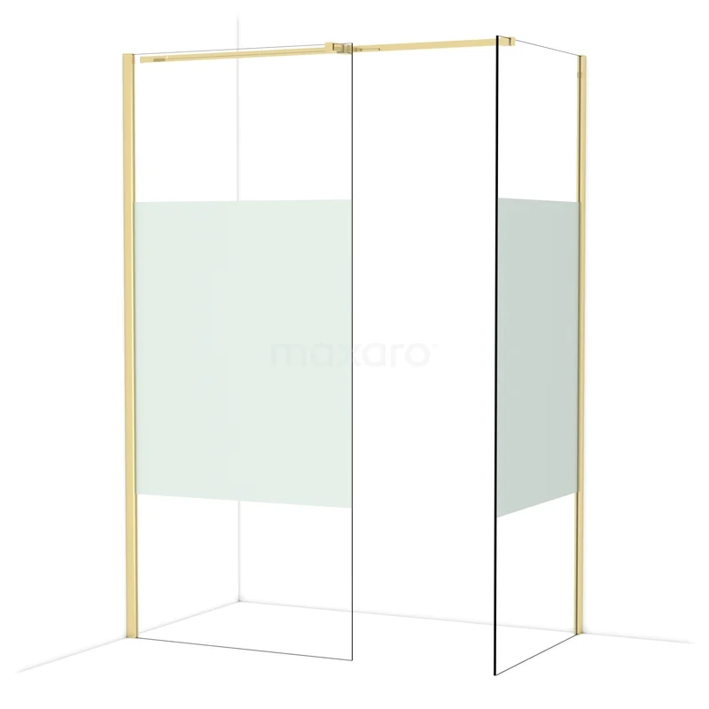 Diamond Walk-in shower | 90x80 cm Shiny light gold Clear with matt strip 2 fixed walls