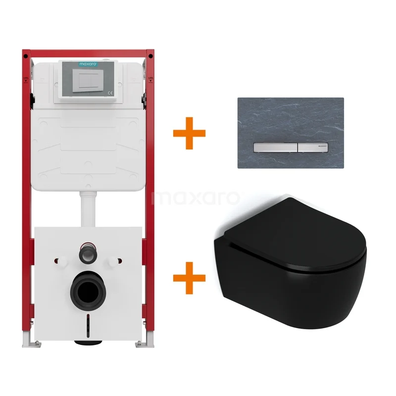 Met deze complete toiletset haal je in één keer alles in huis voor een stijlvol, functioneel en betaalbaar hangtoilet. De set bevat een mat zwart Classico hangtoilet, een softclose toiletzitting, het hoogwaardige Maxaro Flush-inbouwreservoir en een strak vormgegeven bedieningspaneel. Dankzij de perfecte afstemming tussen de onderdelen geniet je van optimale prestaties en comfort, zonder onnodige kosten.