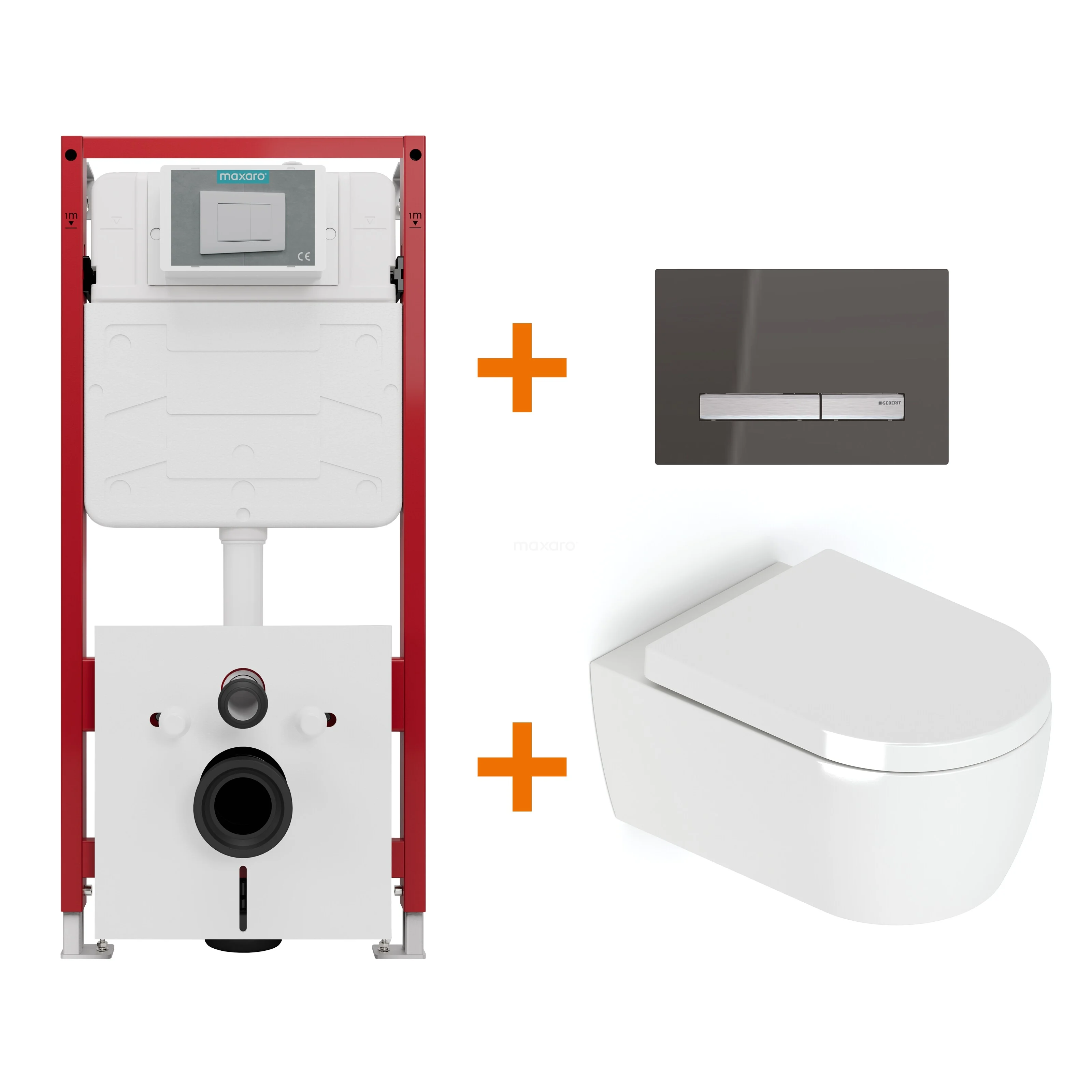 Met deze complete toiletset haal je in één keer alles in huis voor een stijlvol, functioneel en betaalbaar hangtoilet. De set bevat een hoogglans wit Classico hangtoilet, een softclose toiletzitting, het hoogwaardige Maxaro Flush-inbouwreservoir en een strak vormgegeven bedieningspaneel. Dankzij de perfecte afstemming tussen de onderdelen geniet je van optimale prestaties en comfort, zonder onnodige kosten.