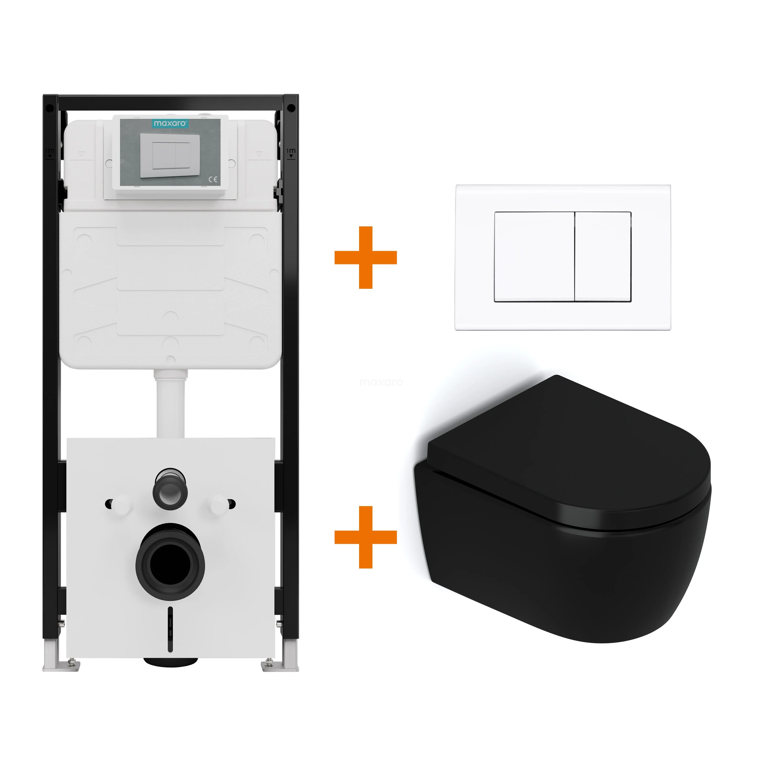 Met deze complete toiletset haal je in één keer alles in huis voor een stijlvol, functioneel en betaalbaar hangtoilet. De set bevat een mat zwart Senza hangtoilet, een softclose toiletzitting, het hoogwaardige Maxaro Flush Pro-inbouwreservoir en een strak vormgegeven bedieningspaneel. Dankzij de perfecte afstemming tussen de onderdelen geniet je van optimale prestaties en comfort, zonder onnodige kosten.