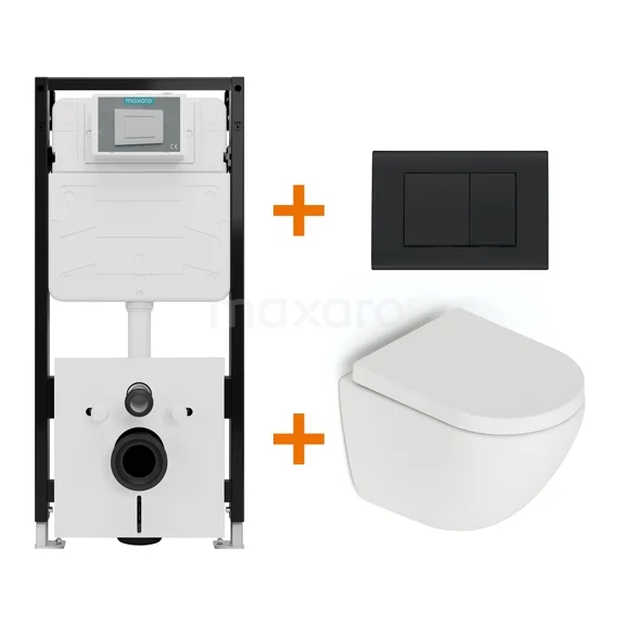 Toiletset Mat wit zonder Spoelrand + Maxaro Flush Pro inbouwreservoir met geluidsisolatie