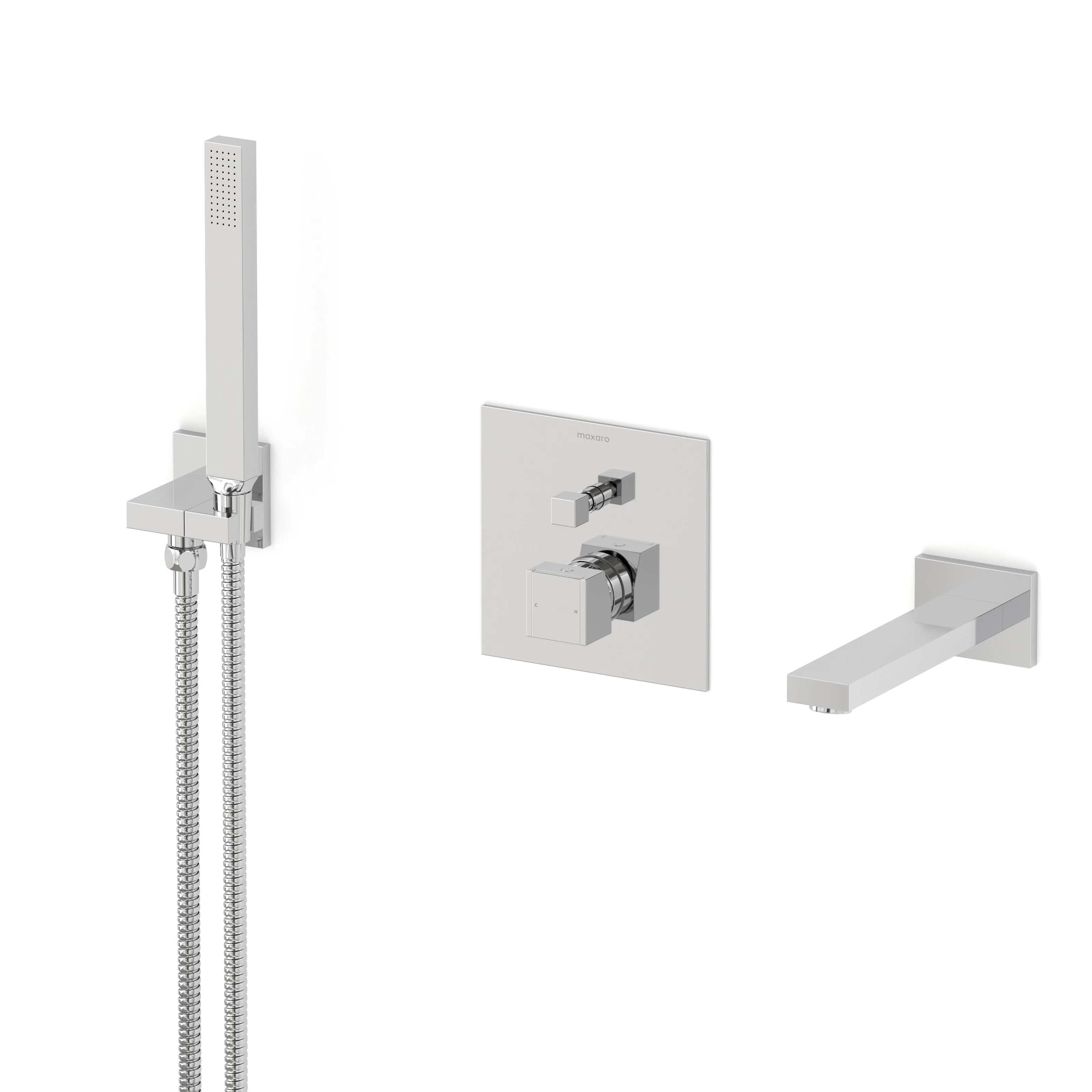 Deze inbouw badkraan met mengkraan uit de Cubic-serie mag absoluut niet ontbreken in uw badkamer. Dit exemplaar is voorzien van een handdouche en doucheslang. De thermostaatkraan heeft een luxe design en is uitgevoerd in chroom. Het tijdloze uiterlijk van deze kraan komt in elke badkamerstijl tot zijn recht.
