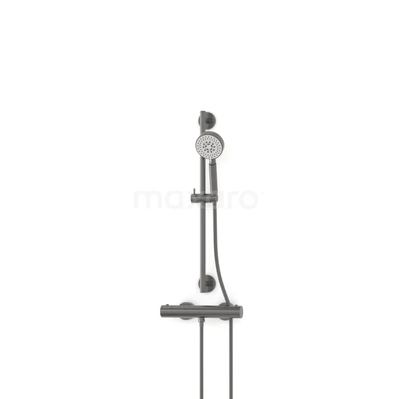 Radius opbouw douchekranenset | Zwart metaal Cool Touch Thermostaatkraan met handdouche 5 standen