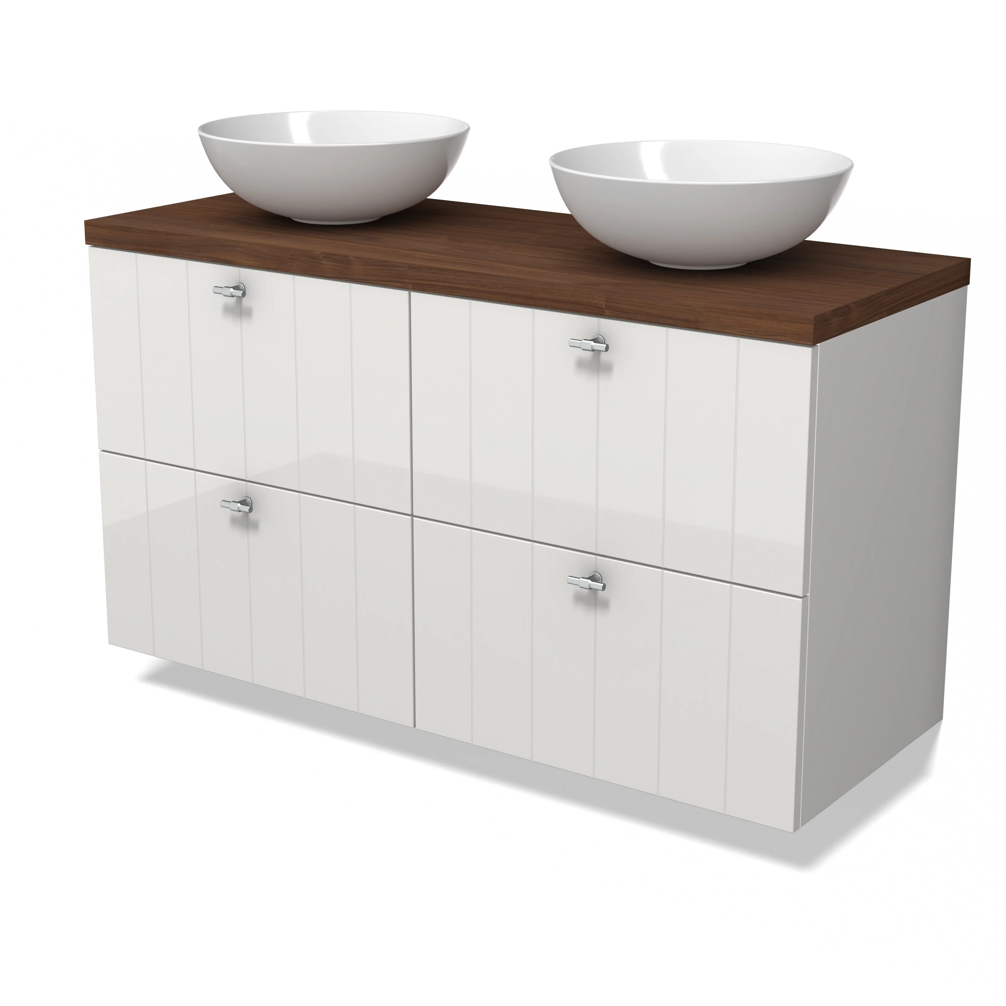 Modulo Plato Badkamermeubel voor waskom | 120 cm Hoogglans wit Lamel front Walnoot blad 4 lades