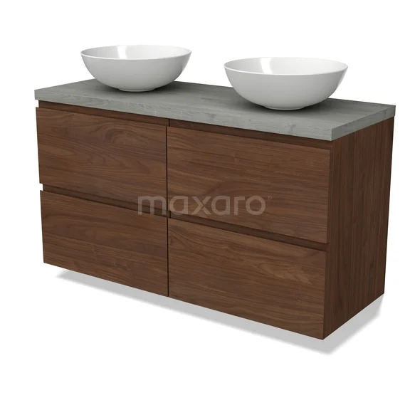 Modulo Plato Badkamermeubel voor waskom | 120 cm Walnoot Greeploos front Grijs eiken blad 4 lades