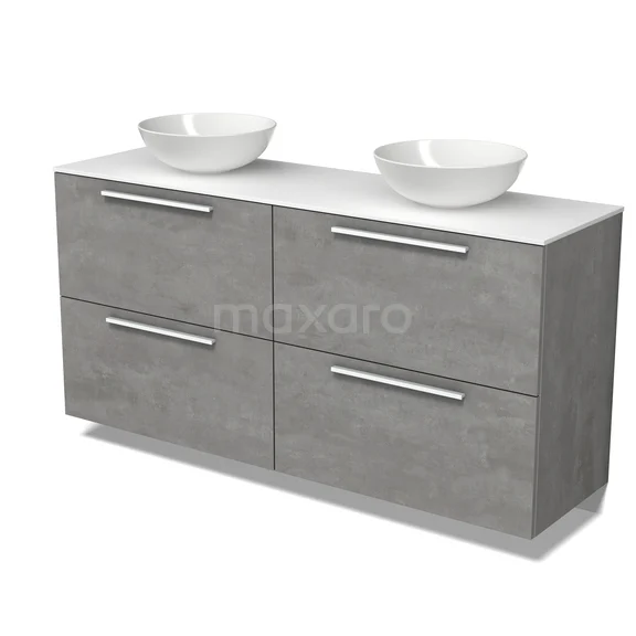 Modulo Plato Badkamermeubel voor waskom | 160 cm Lichtgrijs beton Vlak front Solid surface blad 4 hoge lades