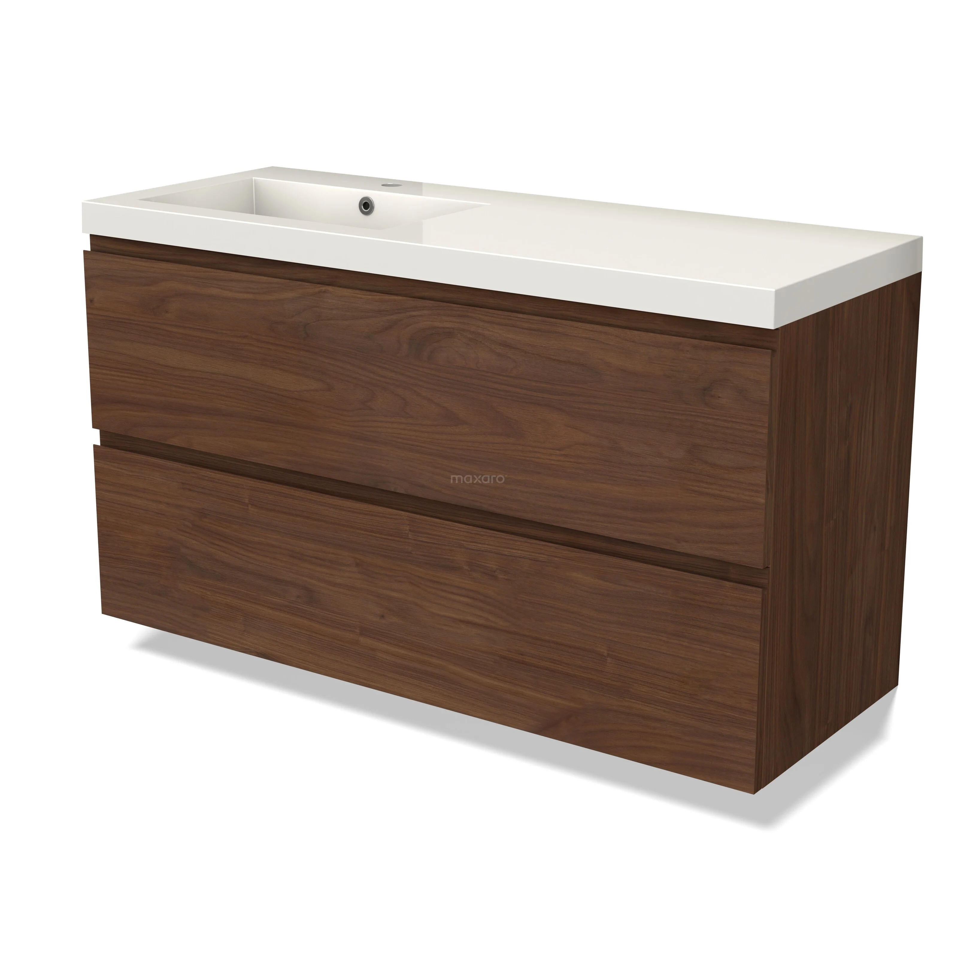 Modulo Badkamermeubel met wastafel | 120 cm Walnoot Greeploos front Mineraalmarmer 2 lades onder elkaar