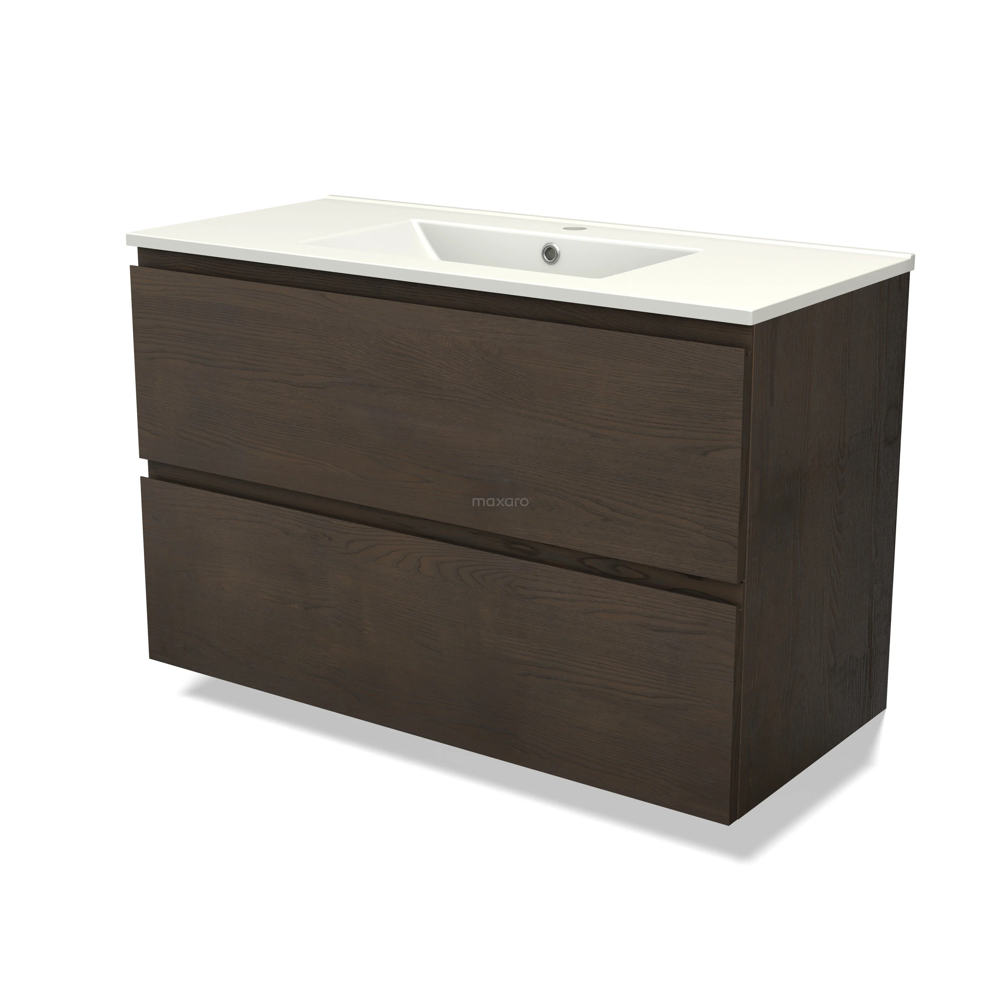 Modulo Plus Badkamermeubel met wastafel | 100 cm Espresso eik Greeploos front Keramiek 2 lades onder elkaar
