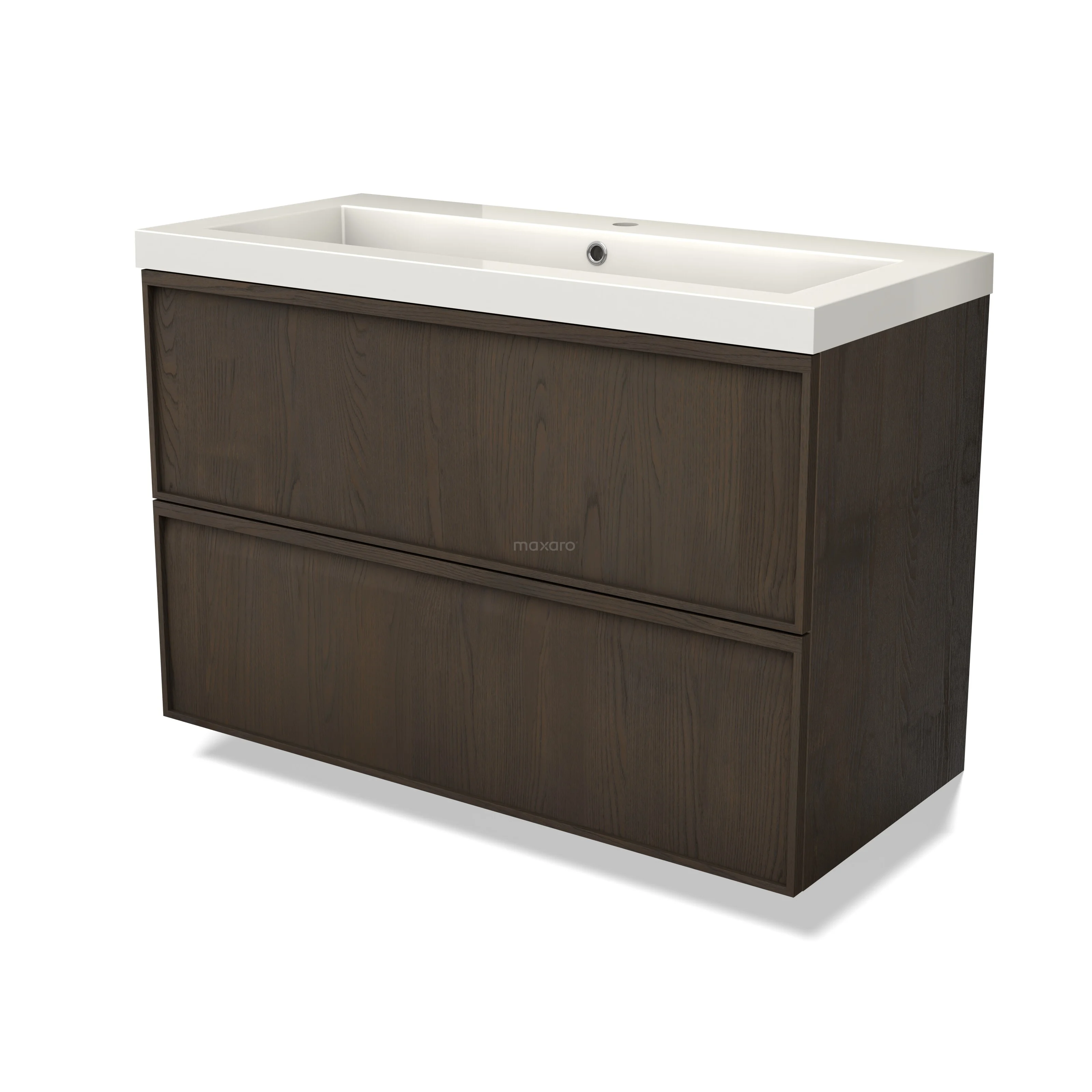 Modulo Plus Badkamermeubel met wastafel | 100 cm Espresso eik Lijst front Mineraalmarmer 2 lades onder elkaar