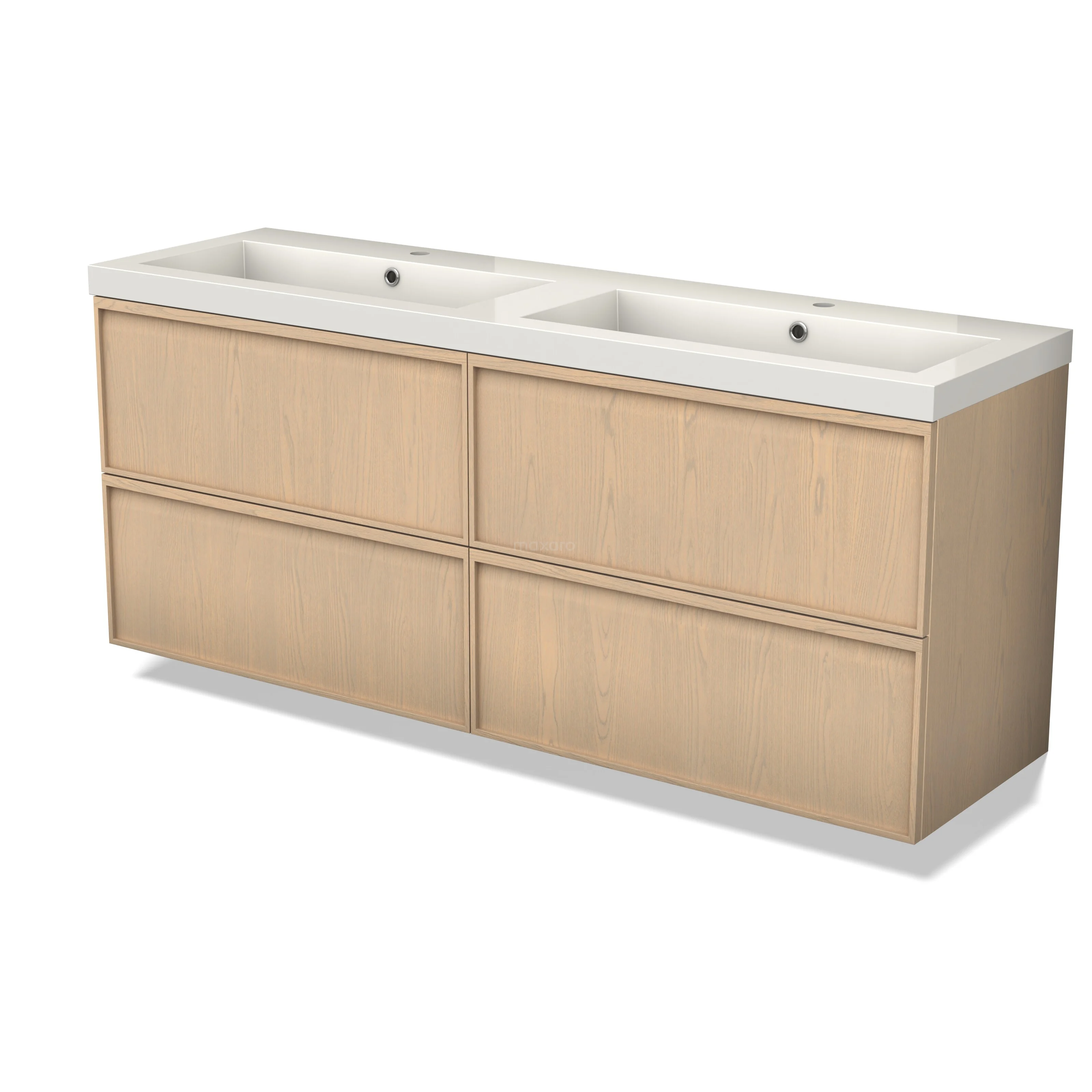 Modulo Plus onderscheidt zich door zijn unieke fronttypes en elegante, afgeronde vormgeving. Het lijstfront valt op door zijn strakke, minimalistische rand en past perfect binnen de serene japandi-stijl, terwijl het natuurlijke hout en het subtiele lijnenspel een warme, exclusieve uitstraling geven. Met een breedte van 160 cm biedt het meubel volop ruimte voor jouw dagelijkse verzorging.
