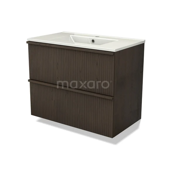 Modulo Plus Badkamermeubel met wastafel | 80 cm Espresso eik Ribbel front Keramiek 2 lades onder elkaar