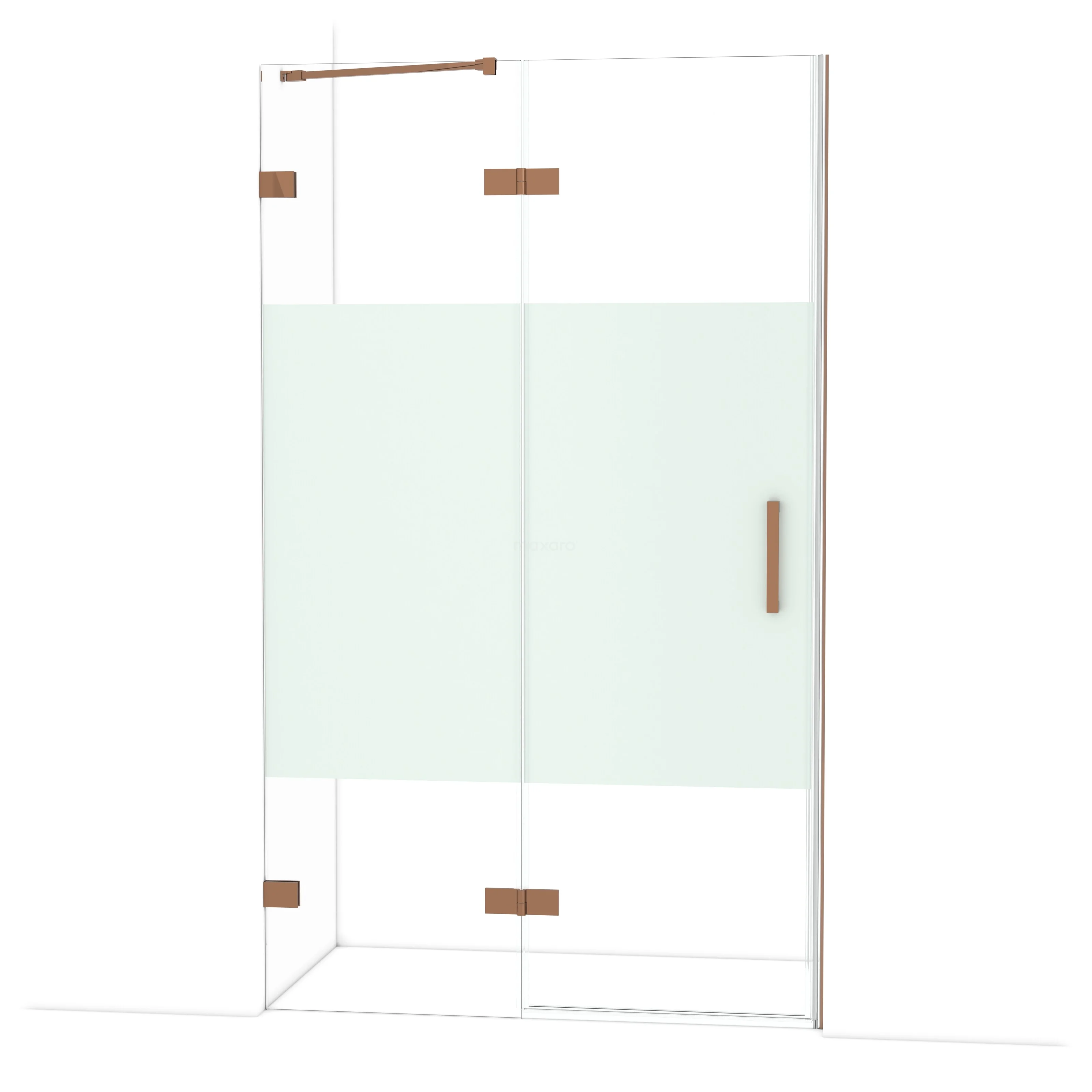 De Diamond-draaideur van 120 cm is ideaal om jouw douchenis af te sluiten. Dit exemplaar heeft een opvallend design van glanzend koper en is voorzien van hoogwaardige scharnieren, tweepuntsbevestiging en een verticaal handvat. Het helder glas met matte strook zorgt voor meer privacy. Door de verstelbaarheid maak je de douchedeur gemakkelijk passend. De totale breedte is verstelbaar van 119,7 tot en met 120 cm.