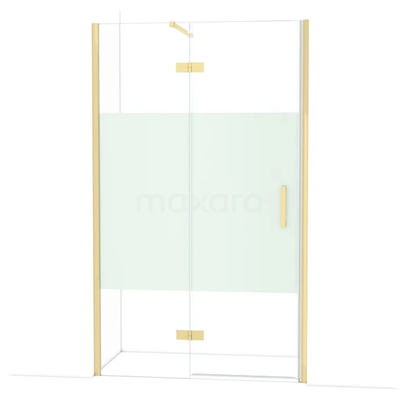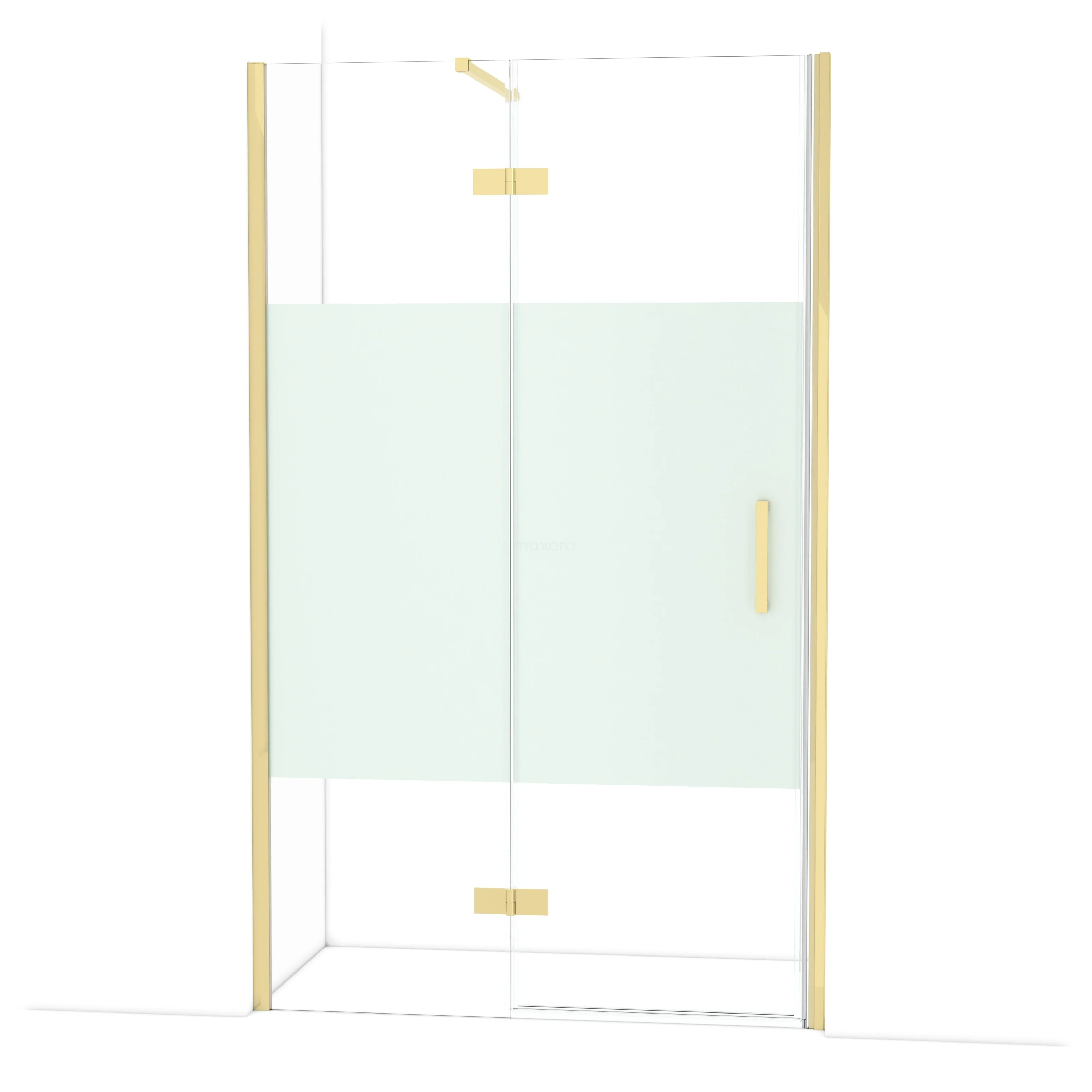Diamond Douchedeur | 120 cm Glanzend lichtgoud Helder met matte strook Draaideur