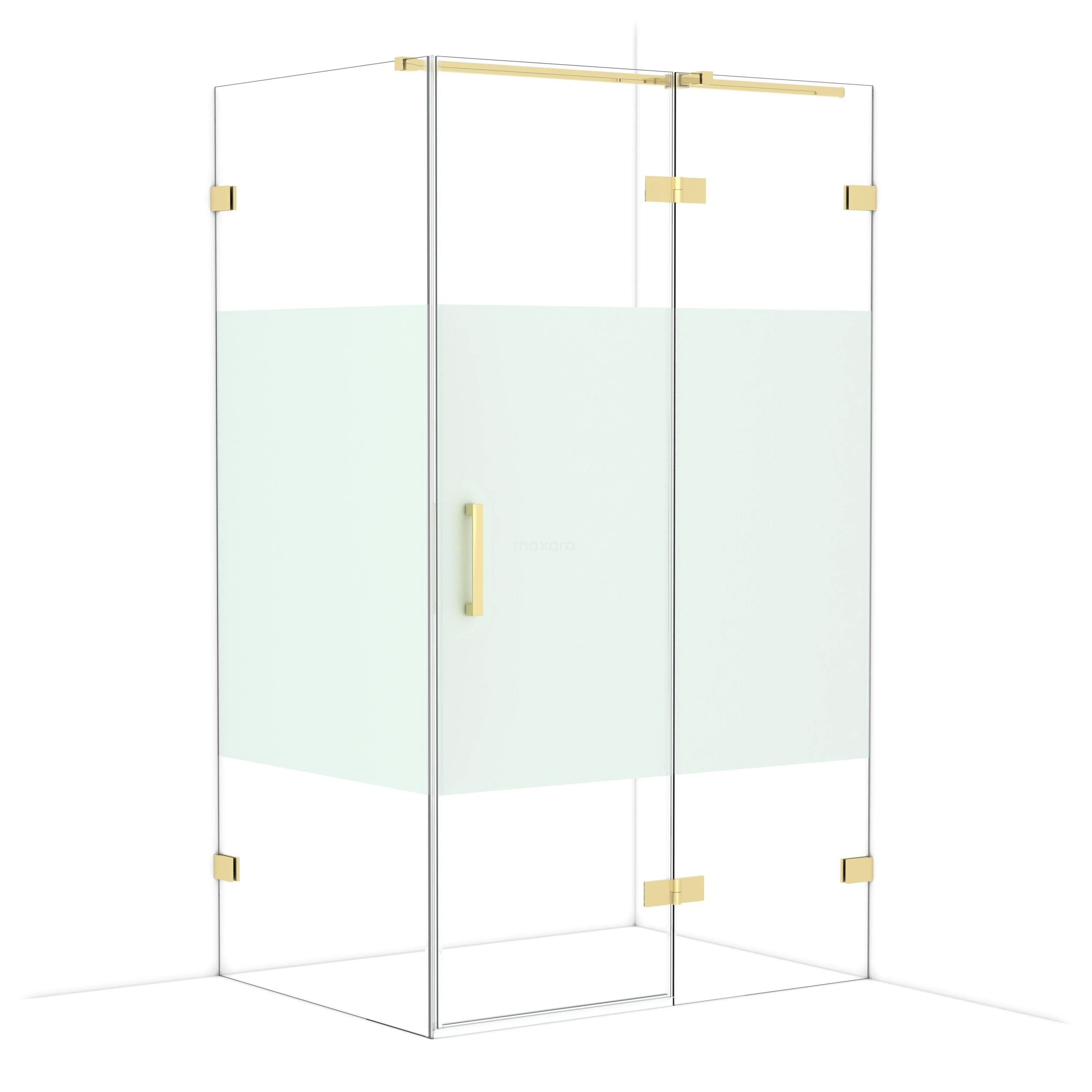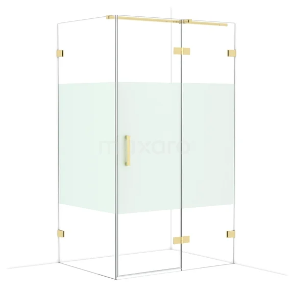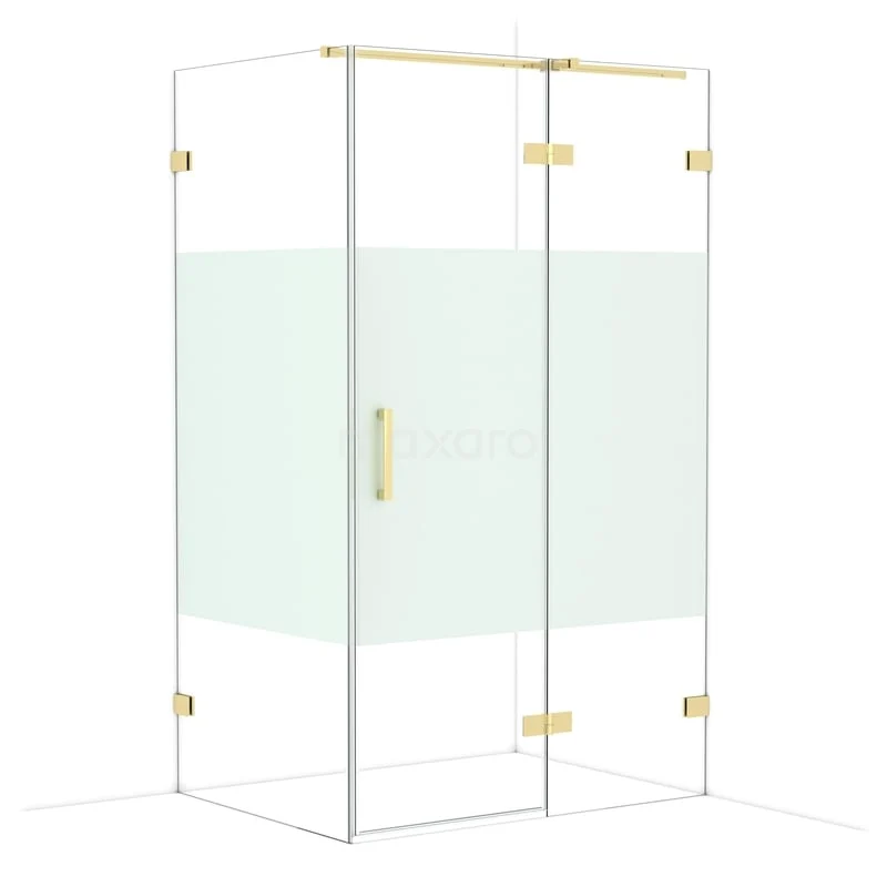 Diamond Douchecabine | 120x90 cm Glanzend lichtgoud Helder met matte strook Draaideur Rechthoek