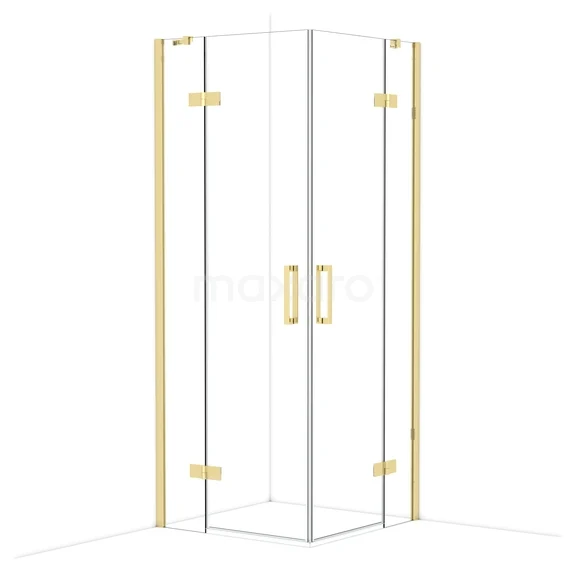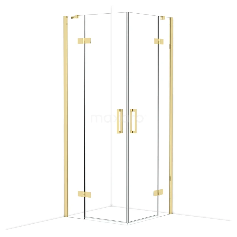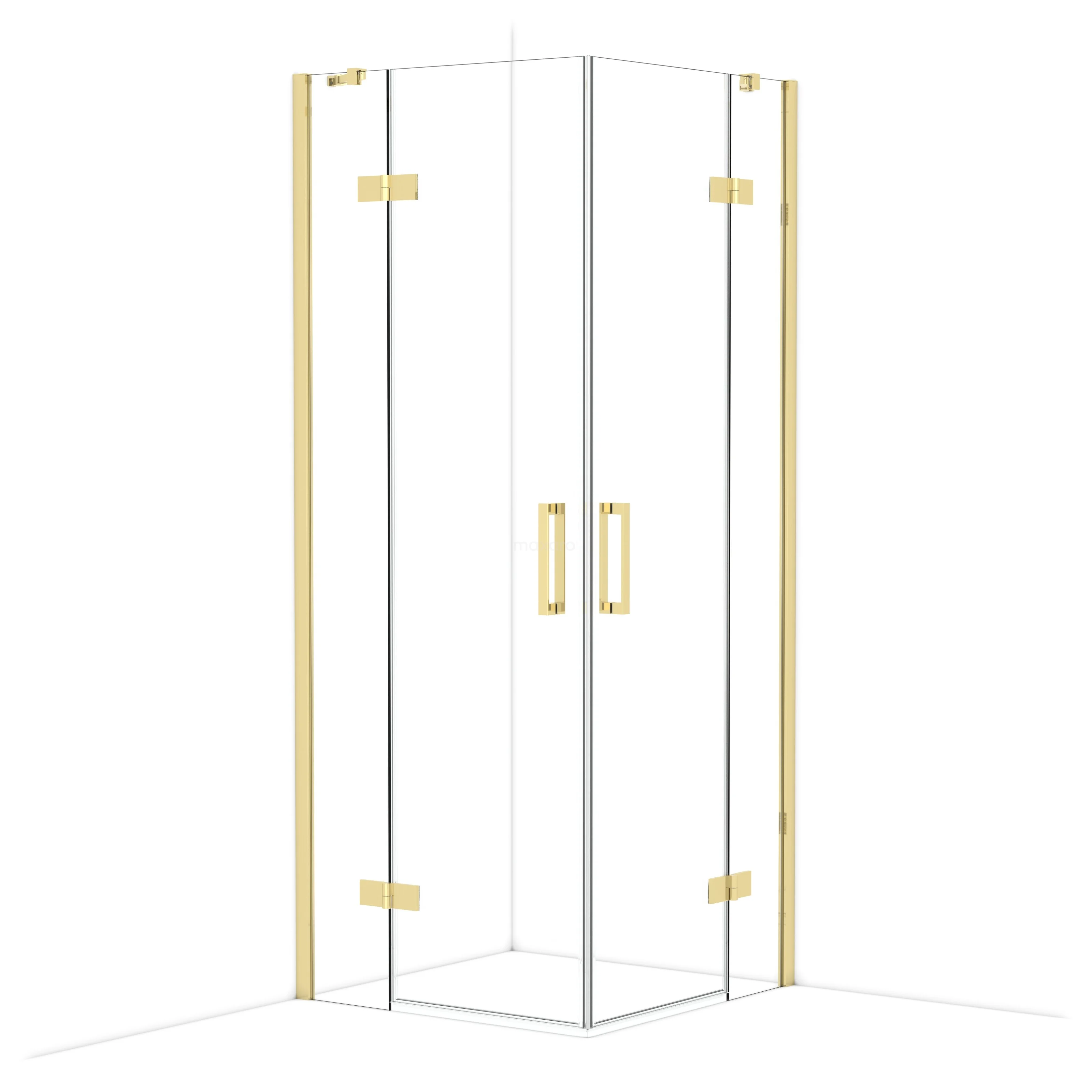 Diamond Douchecabine | 80x80 cm Glanzend lichtgoud Helder glas Draaideur Vierkant