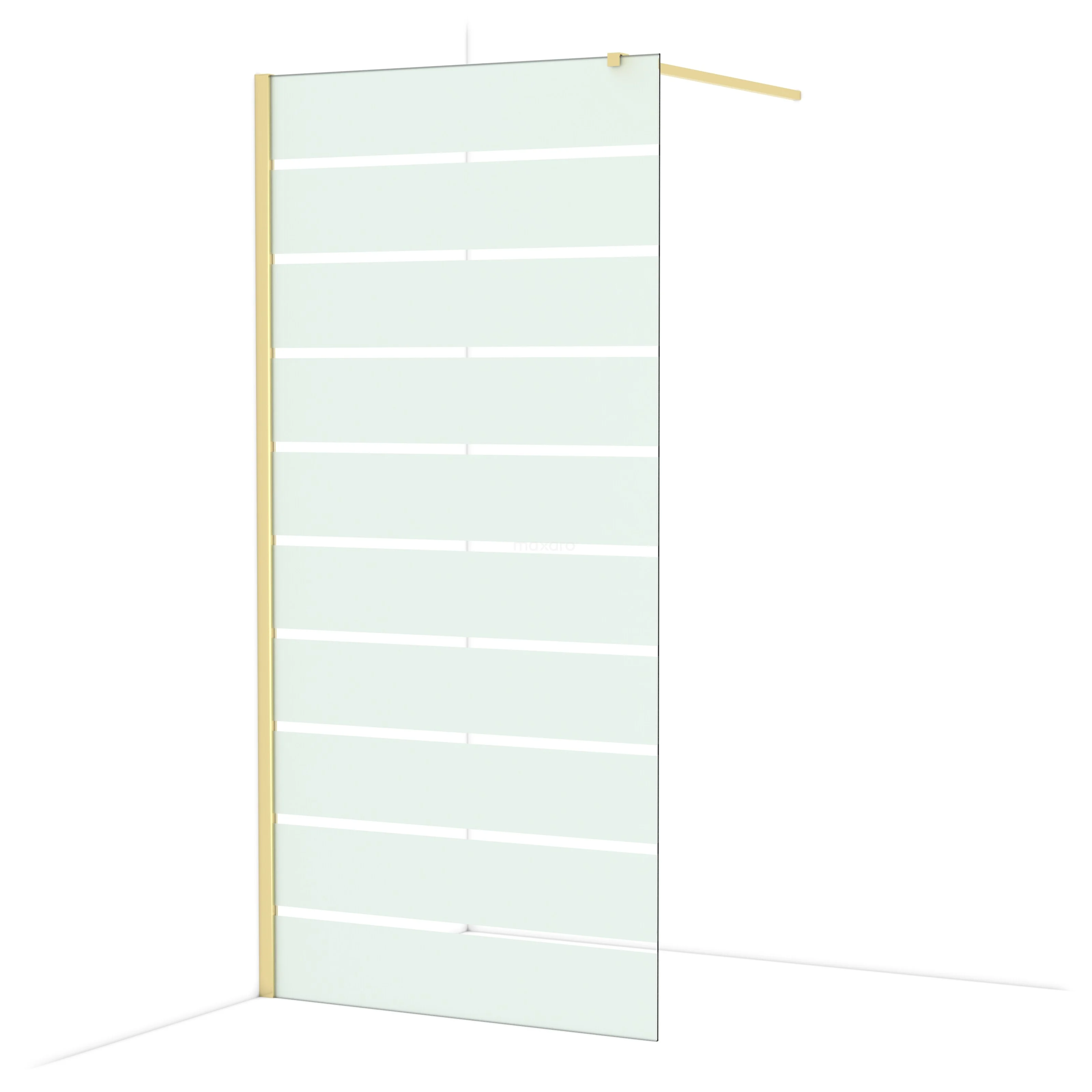 Diamond Inloopdouche | 100 cm Glanzend lichtgoud Helder met matte strepen Vaste wand