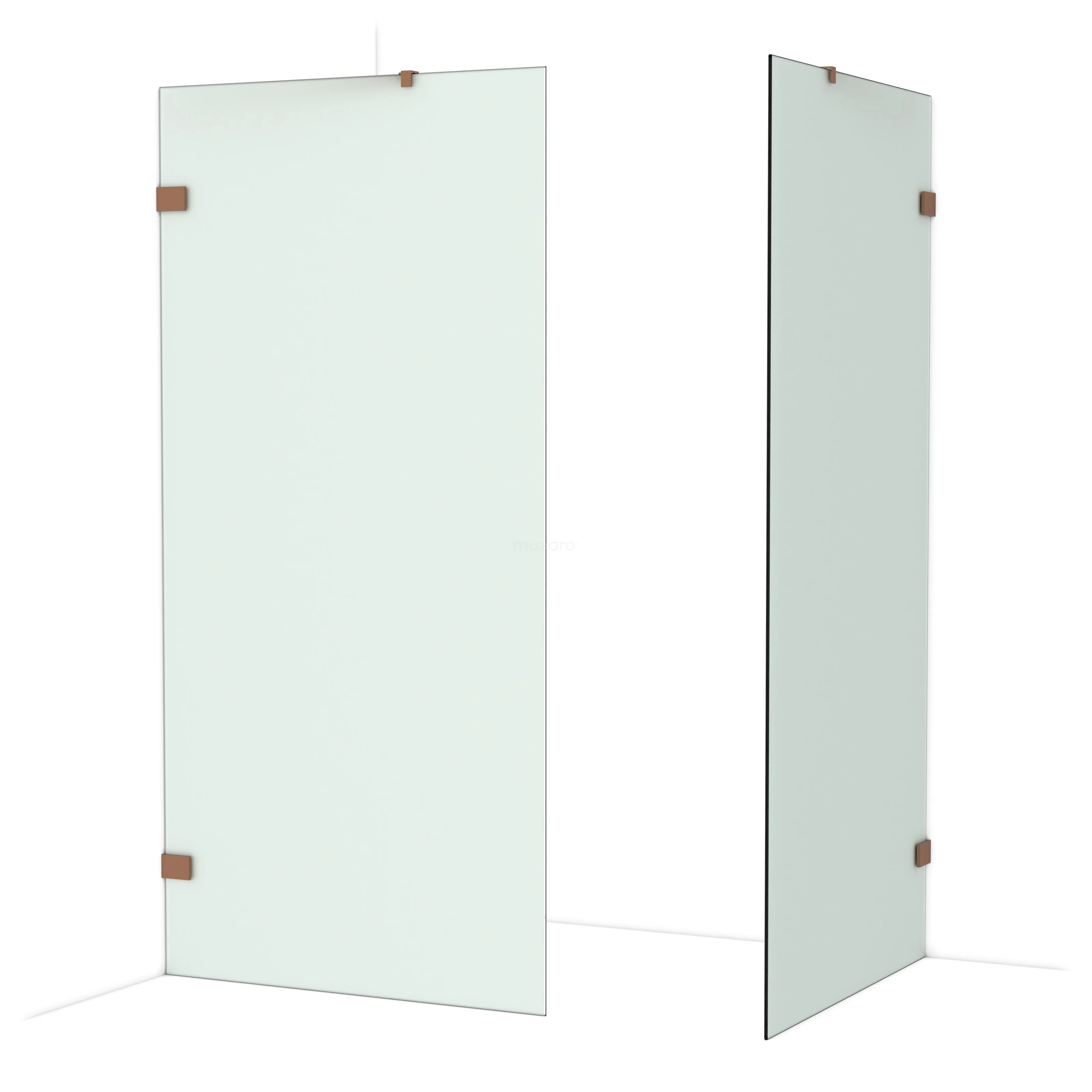 De glaswand is gespiegeld te monteren.