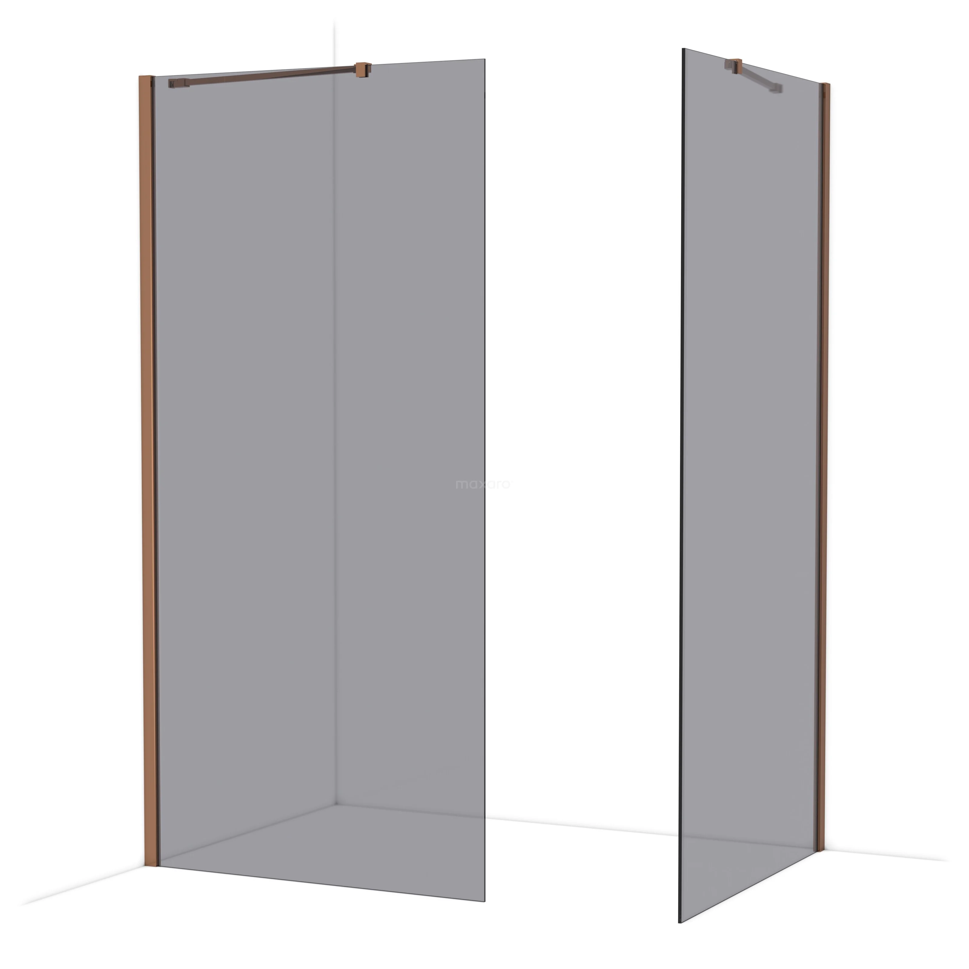 Diamond Inloopdouche | 100x100 cm Glanzend koper Rookglas 2 vaste wanden
