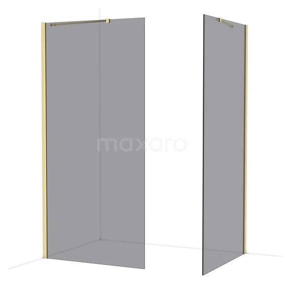 Diamond Inloopdouche | 100x100 cm Glanzend lichtgoud Rookglas 2 vaste wanden