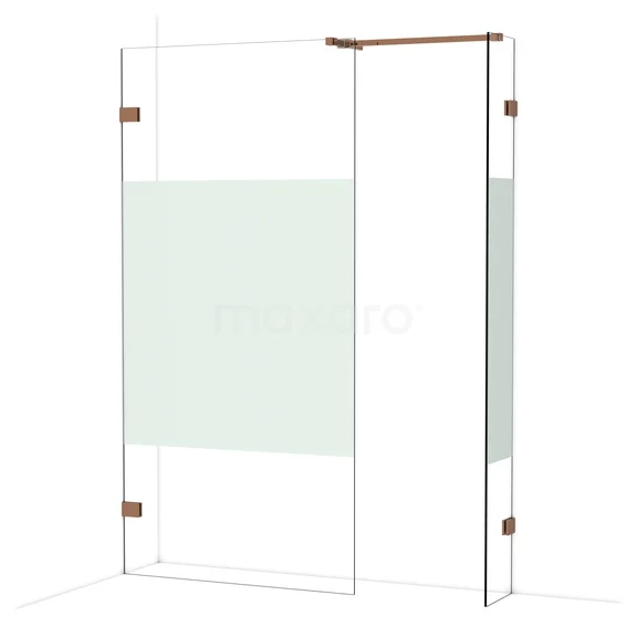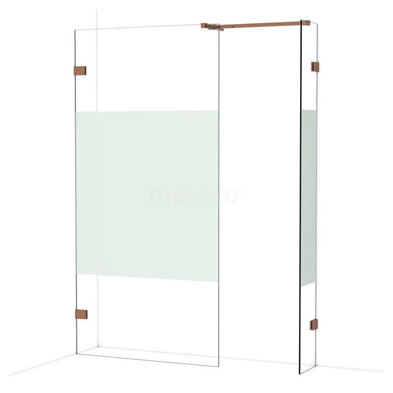 Diamond Inloopdouche | 100x30 cm Glanzend koper Helder met matte strook 2 vaste wanden