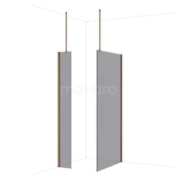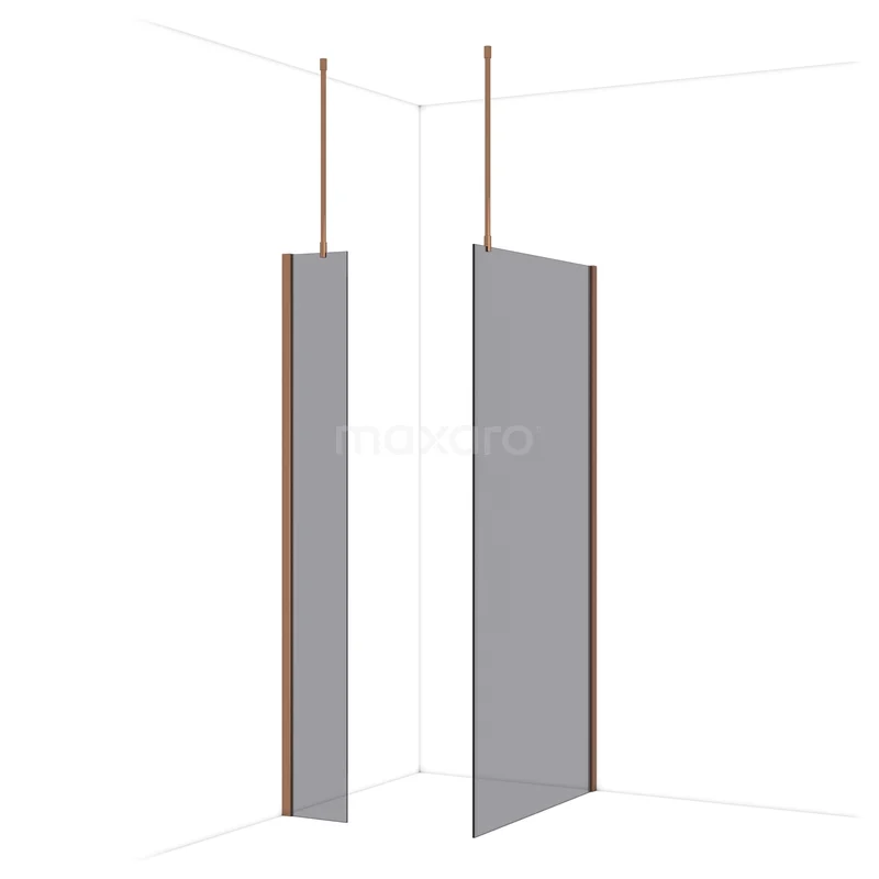 Diamond Inloopdouche | 100x30 cm Glanzend koper Rookglas 2 vaste wanden
