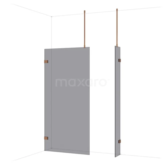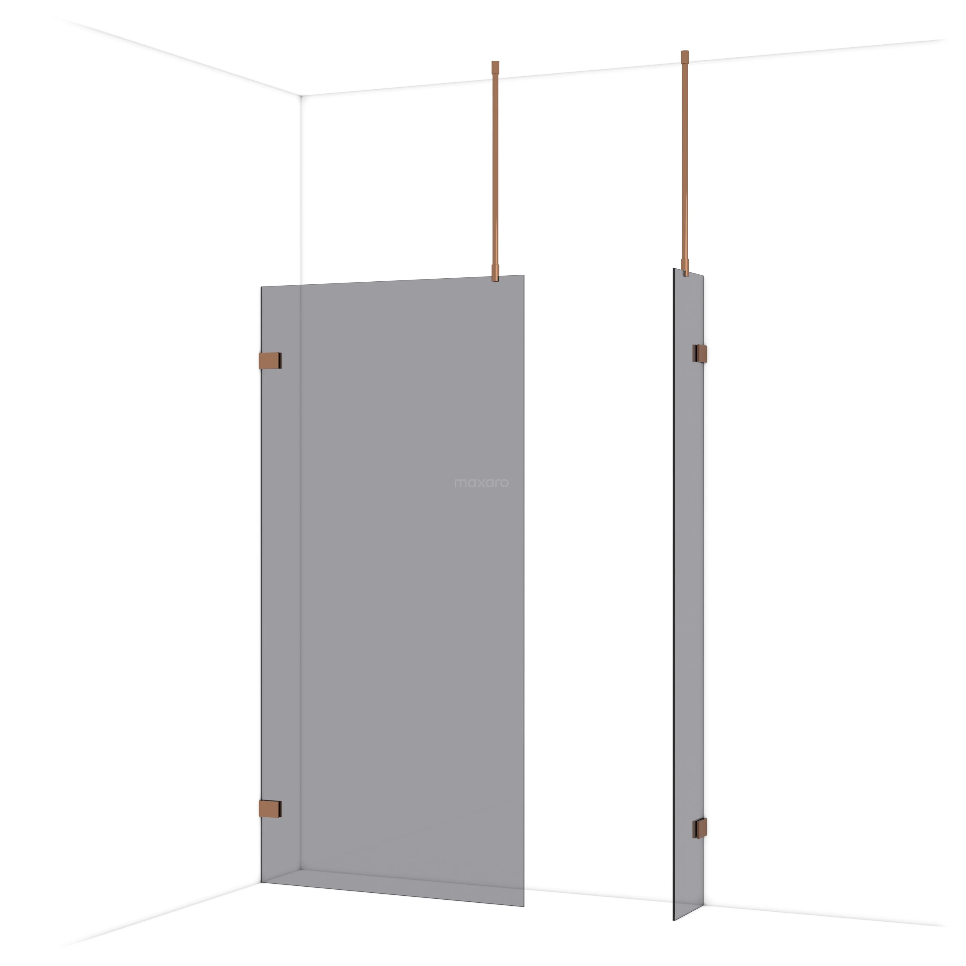 Diamond Inloopdouche | 100x30 cm Glanzend koper Rookglas 2 vaste wanden