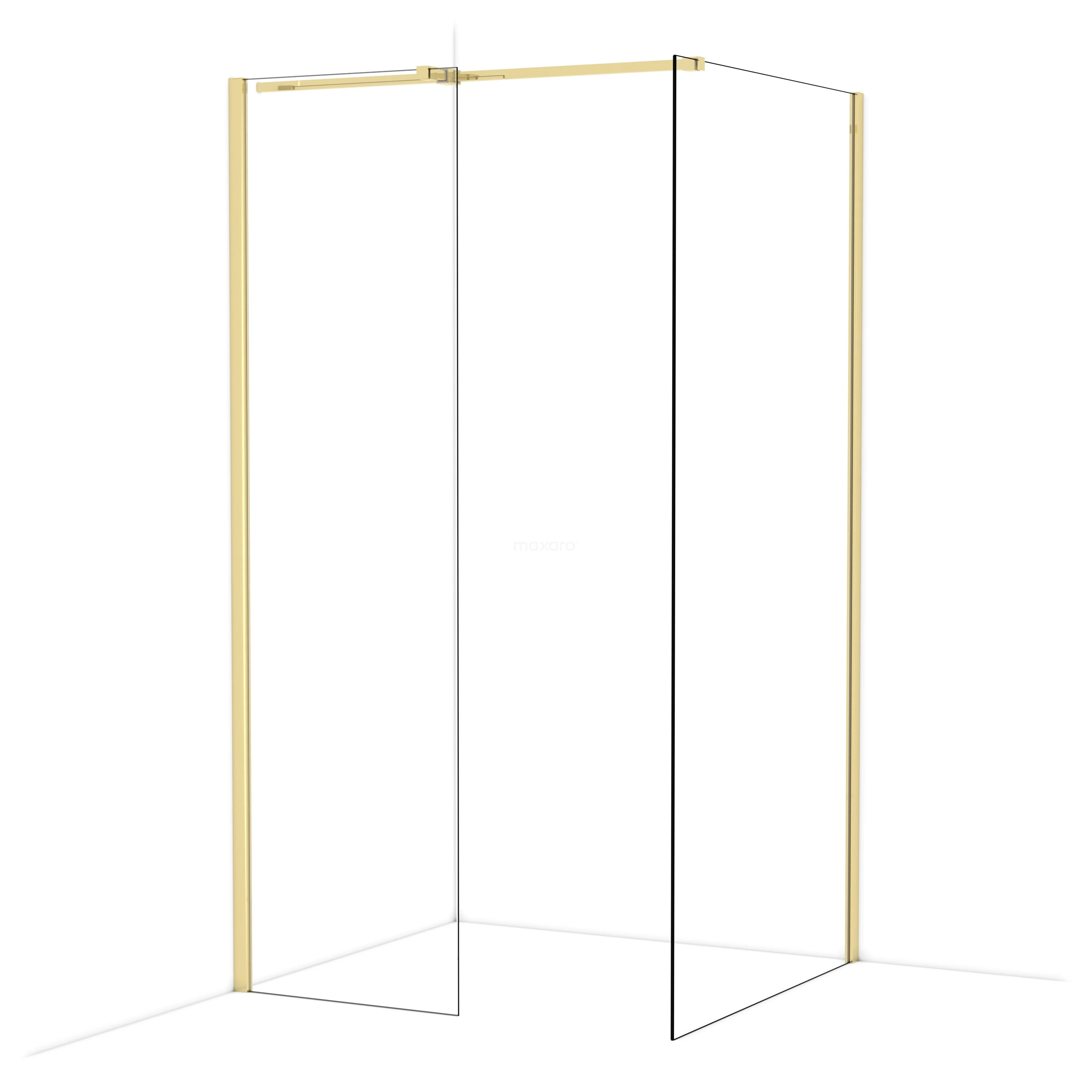 Diamond Inloopdouche | 100x60 cm Glanzend lichtgoud Helder glas 2 vaste wanden