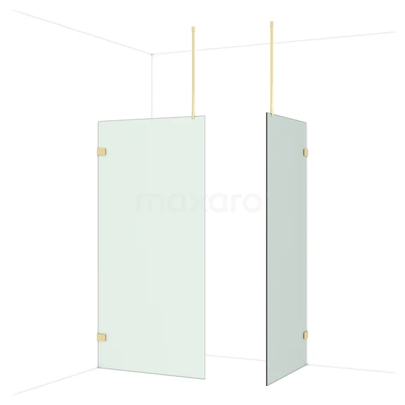 Diamond Inloopdouche | 100x90 cm Glanzend lichtgoud Matglas 2 vaste wanden