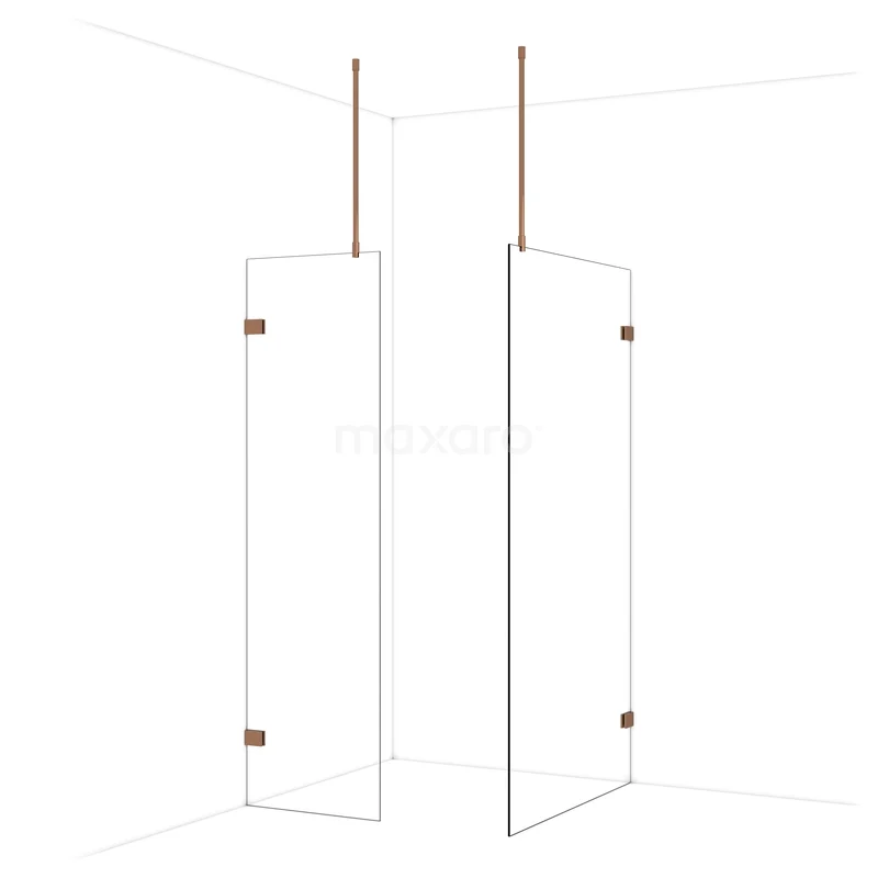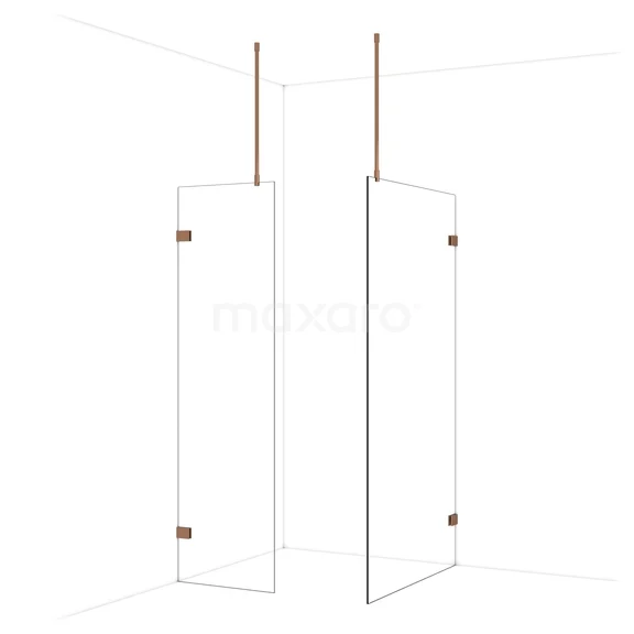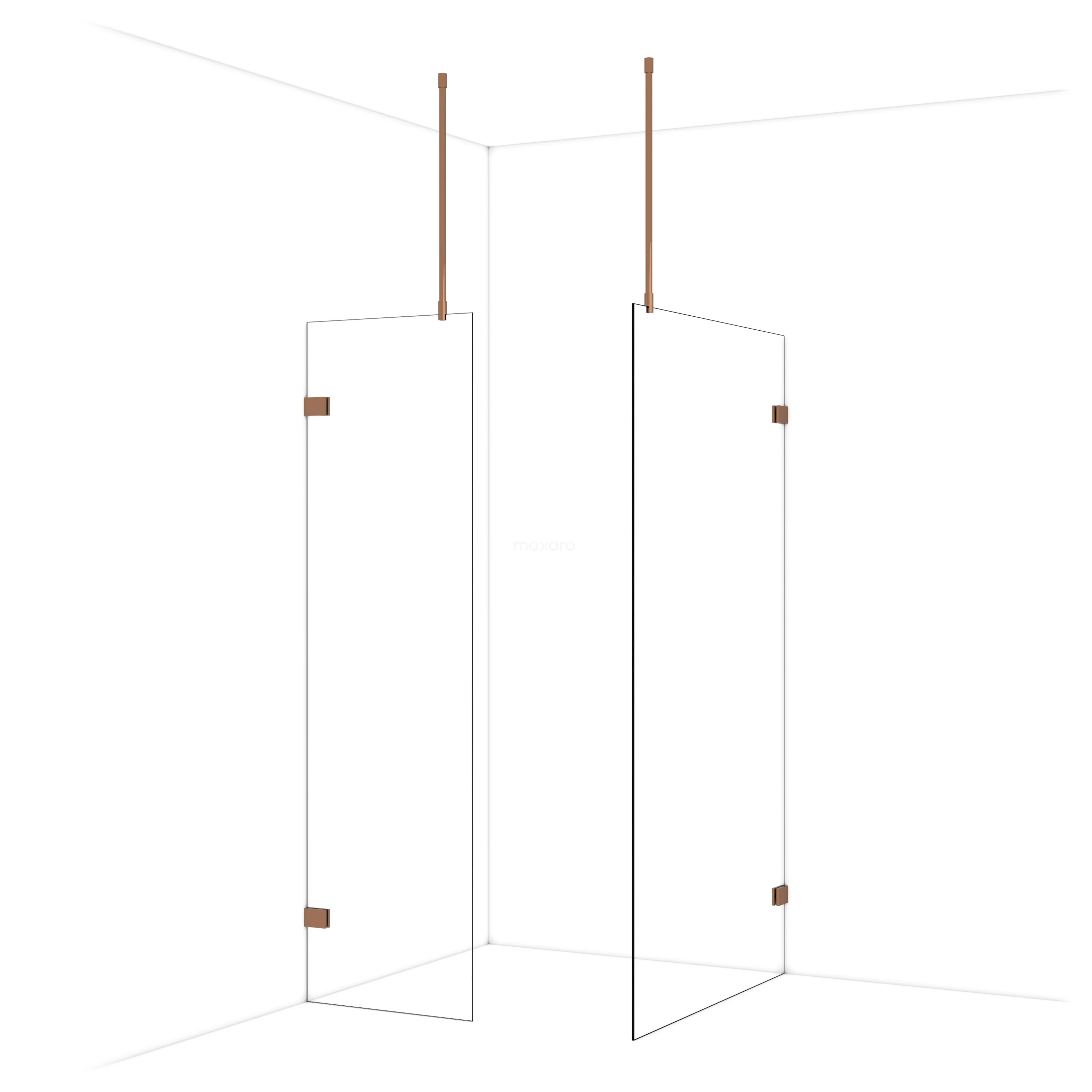 Diamond Inloopdouche | 110x60 cm Glanzend koper Helder glas 2 vaste wanden