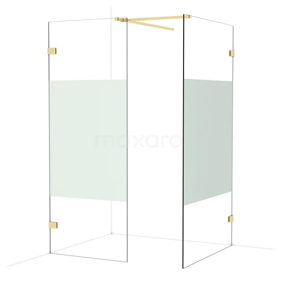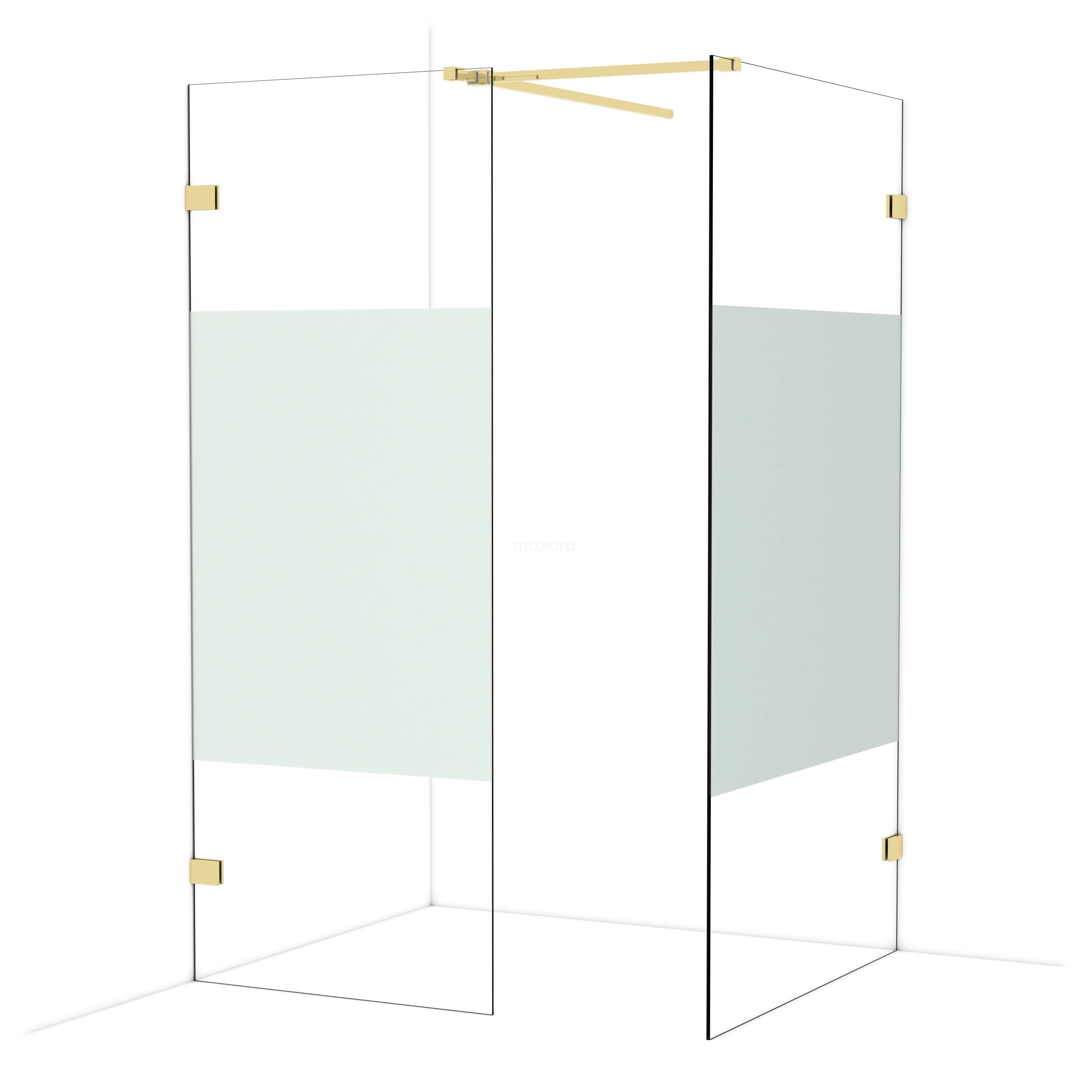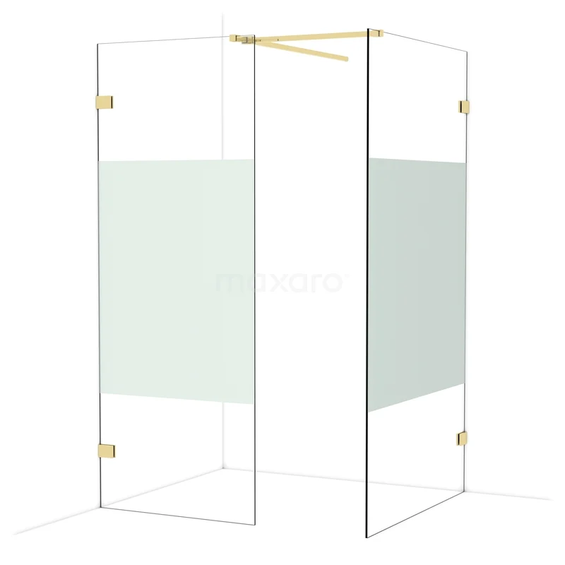 Diamond Inloopdouche | 110x80 cm Glanzend lichtgoud Helder met matte strook 2 vaste wanden