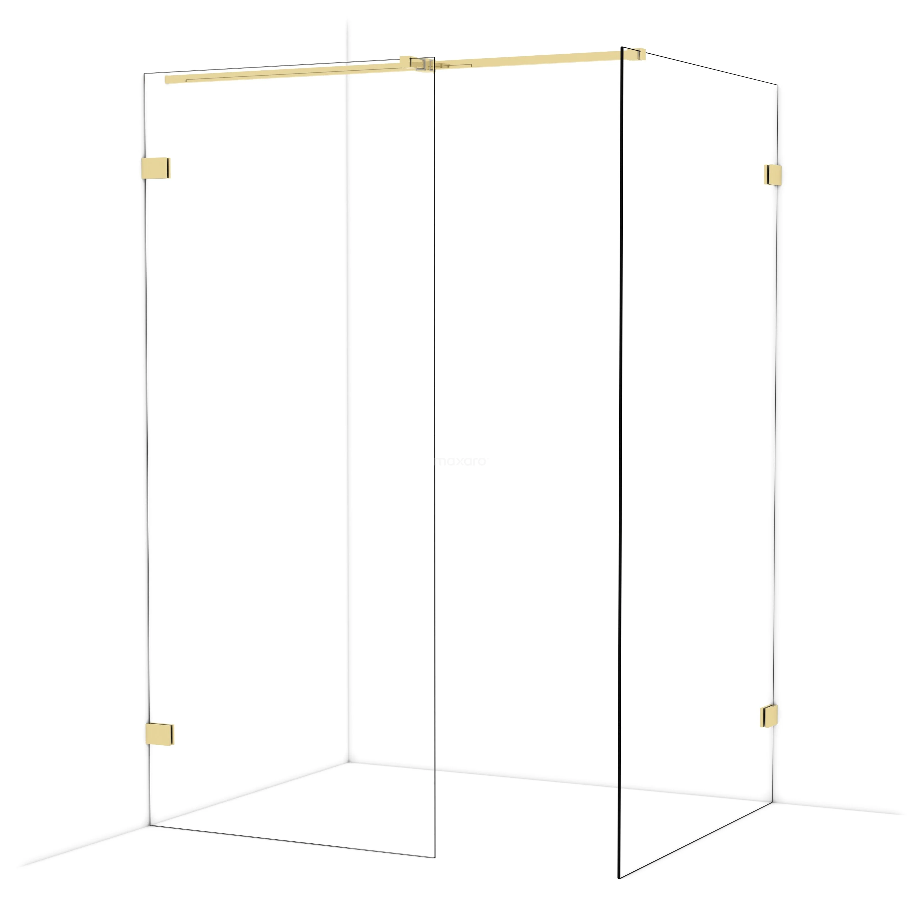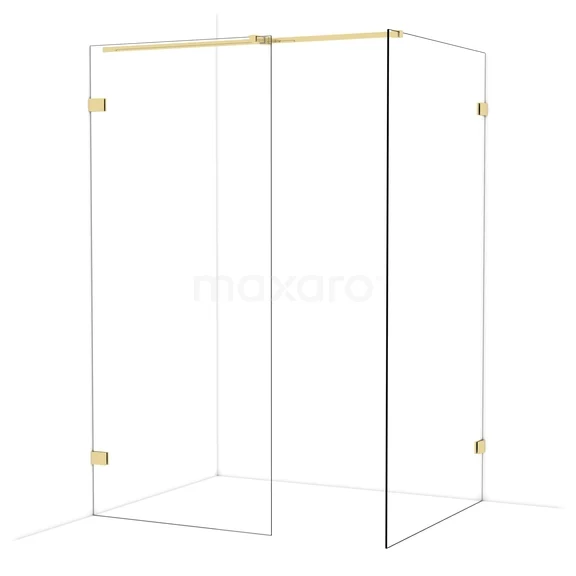 Diamond Inloopdouche | 110x90 cm Glanzend lichtgoud Helder glas 2 vaste wanden