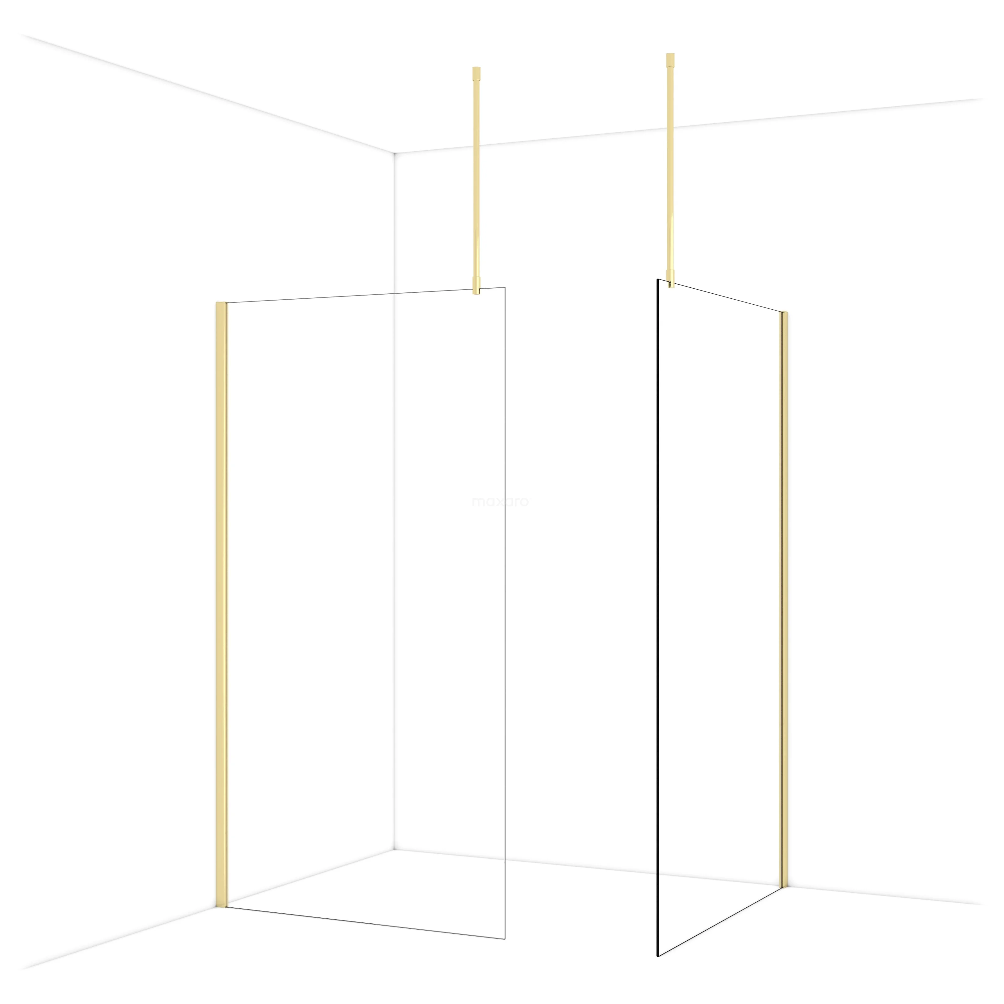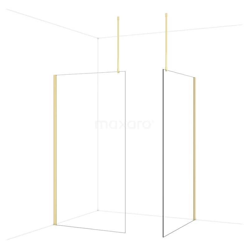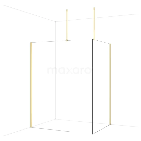 Diamond Inloopdouche | 120x110 cm Glanzend lichtgoud Helder glas 2 vaste wanden