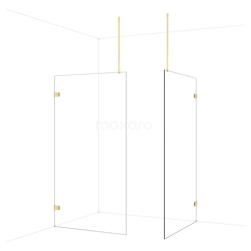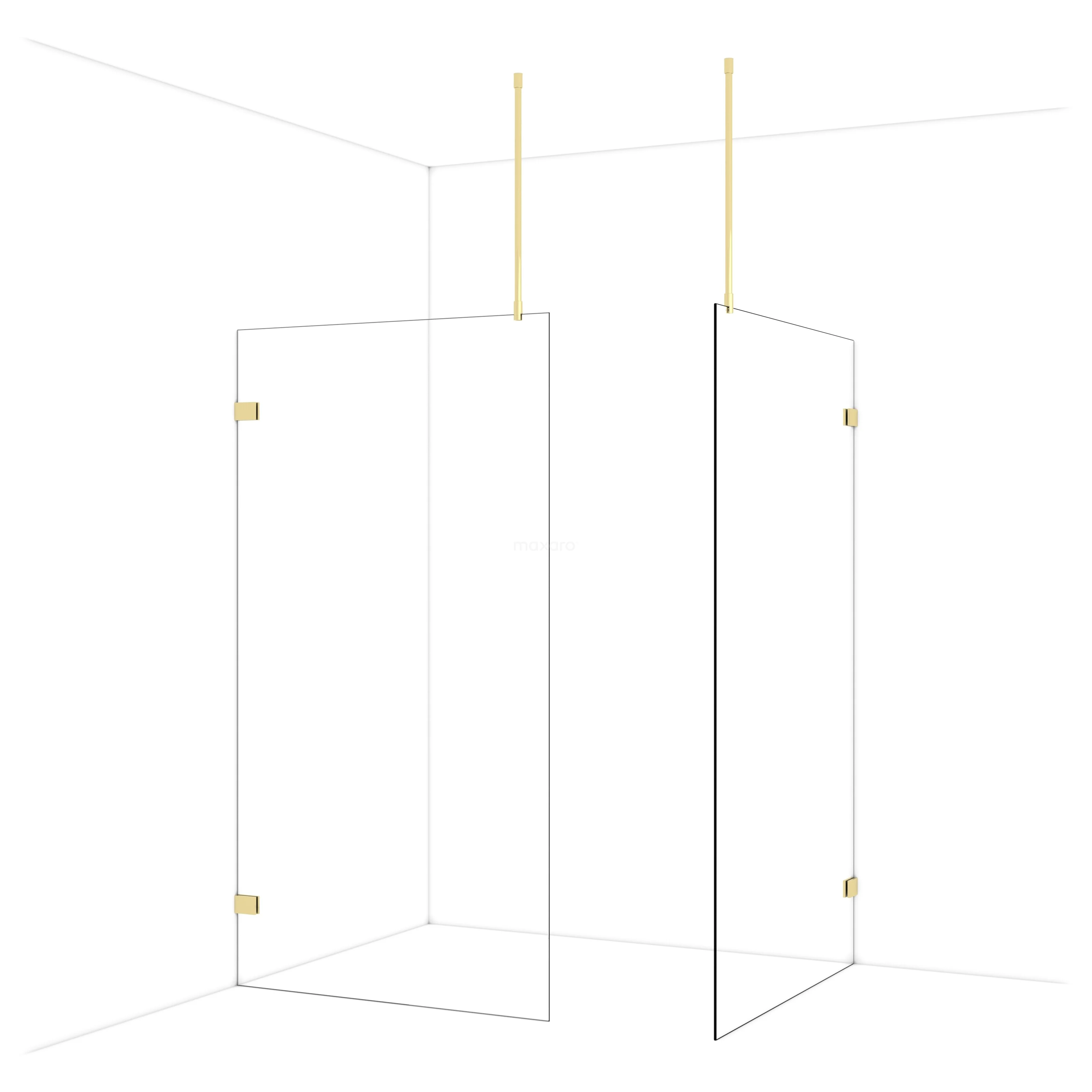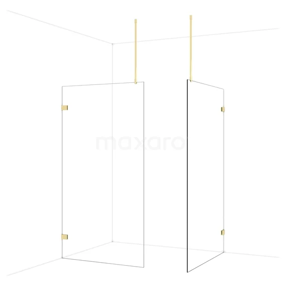 Diamond Inloopdouche | 120x110 cm Glanzend lichtgoud Helder glas 2 vaste wanden