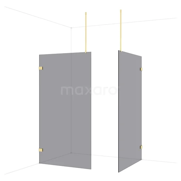 Diamond Inloopdouche | 120x110 cm Glanzend lichtgoud Rookglas 2 vaste wanden