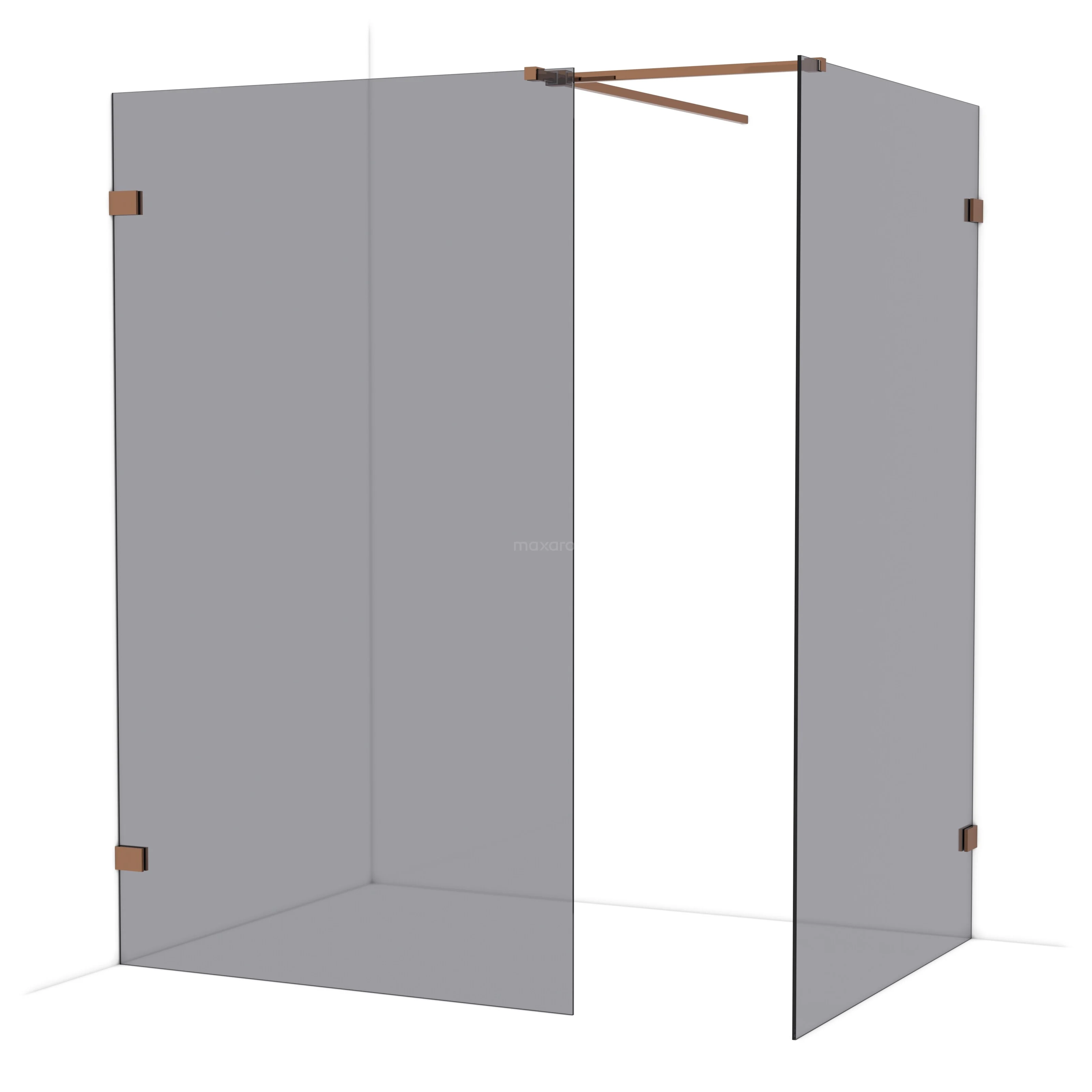 Diamond Inloopdouche | 120x120 cm Glanzend koper Rookglas 2 vaste wanden
