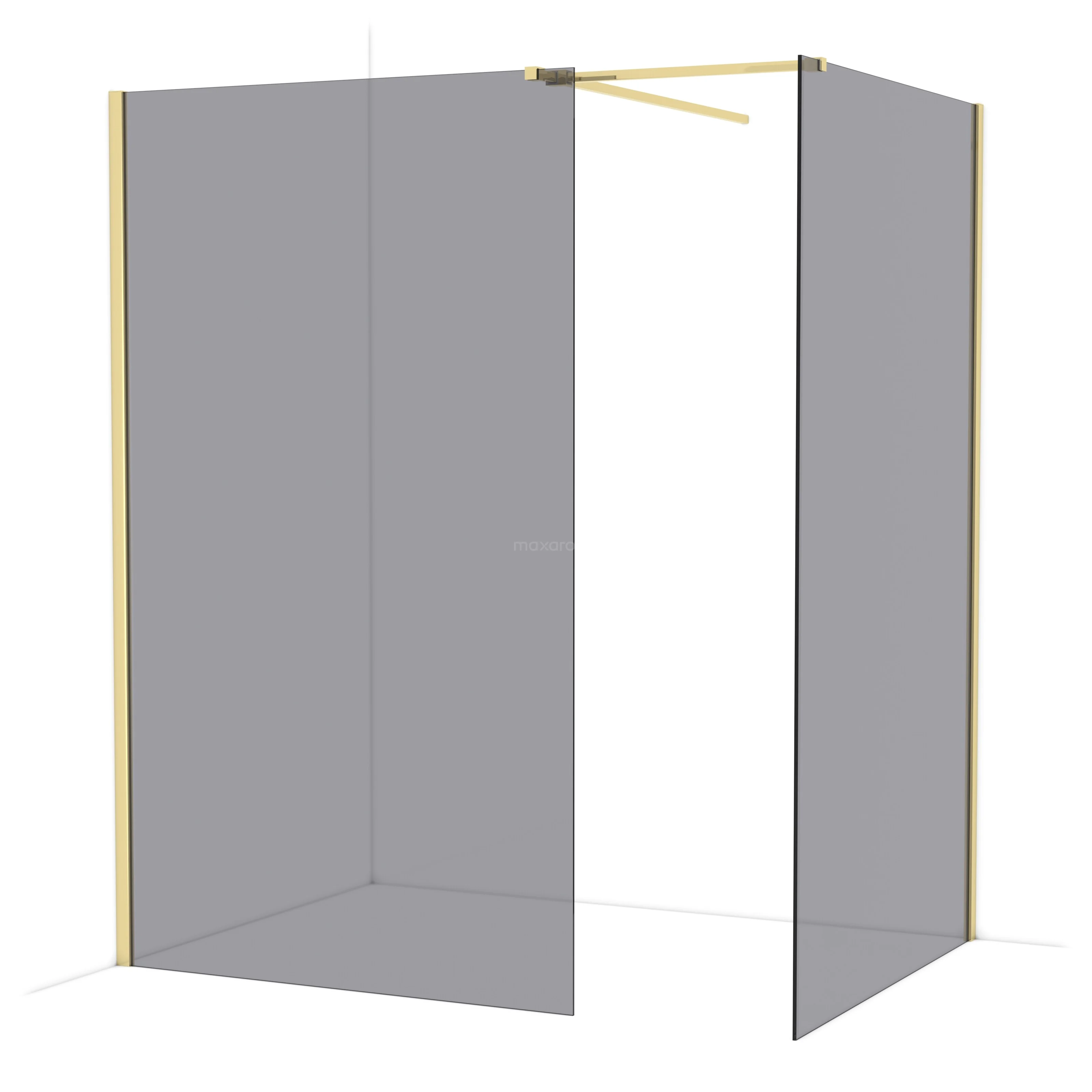 Diamond Inloopdouche | 120x120 cm Glanzend lichtgoud Rookglas 2 vaste wanden