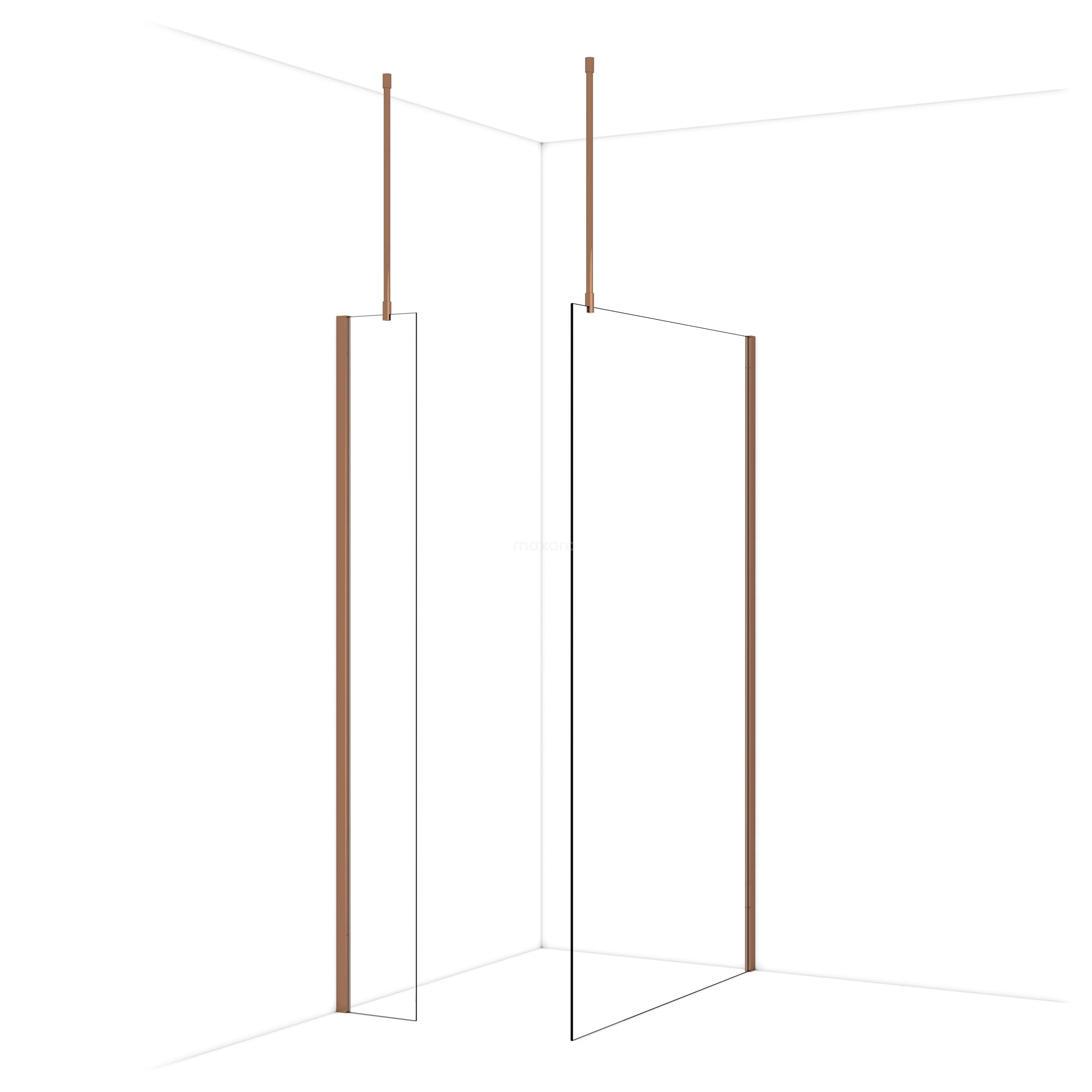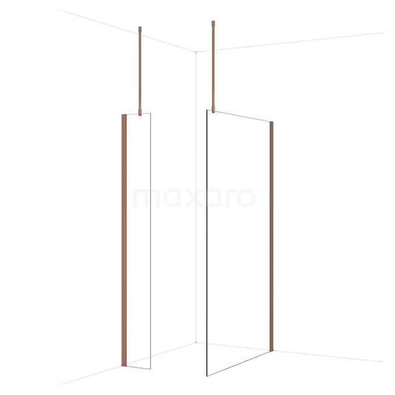 Diamond Inloopdouche | 120x30 cm Glanzend koper Helder glas 2 vaste wanden