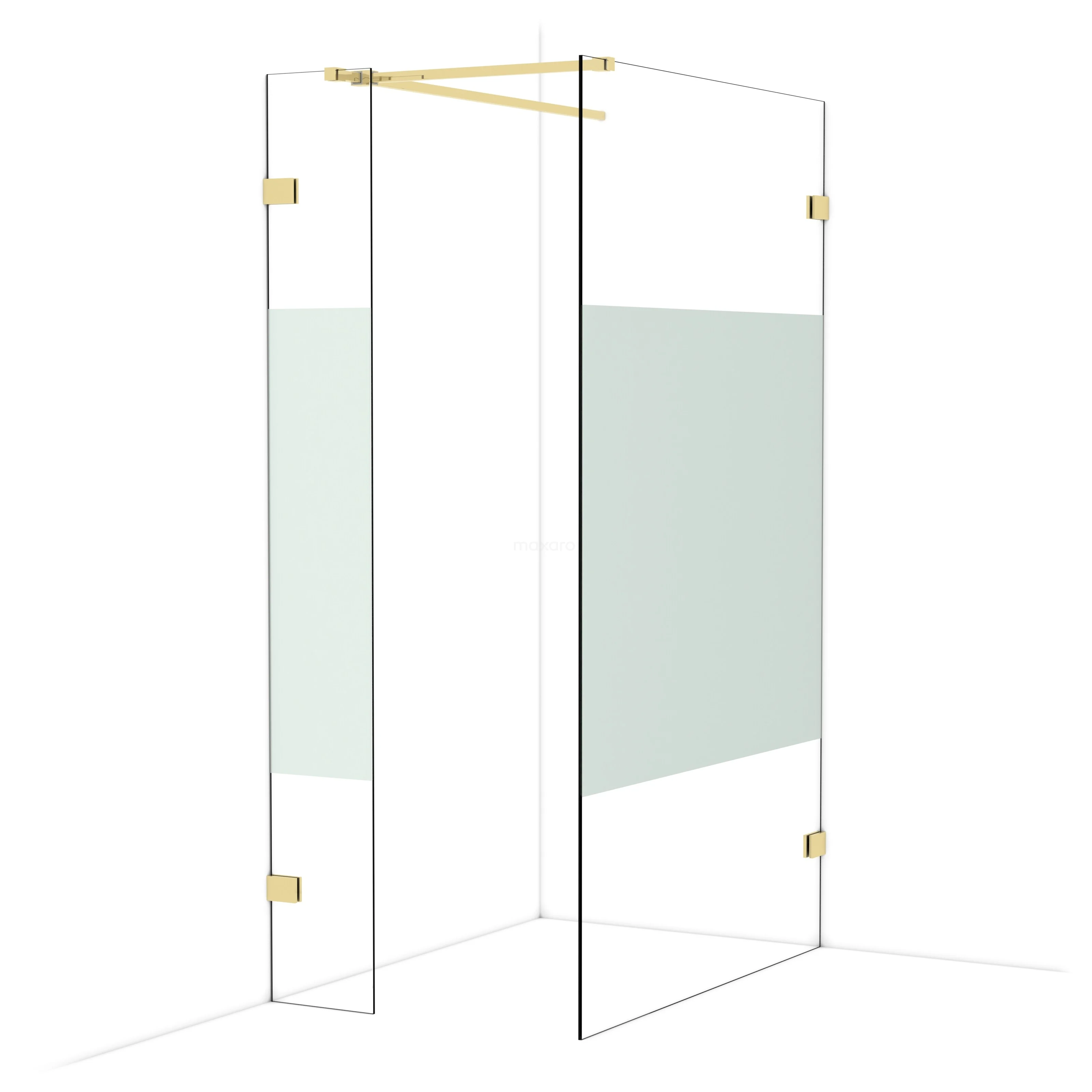 Diamond Inloopdouche | 120x30 cm Glanzend lichtgoud Helder met matte strook 2 vaste wanden