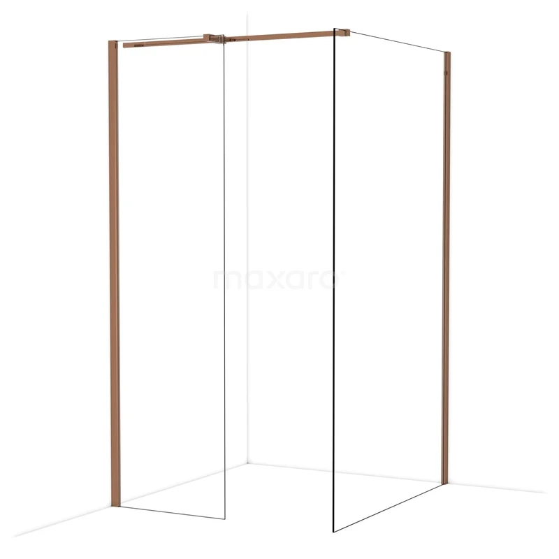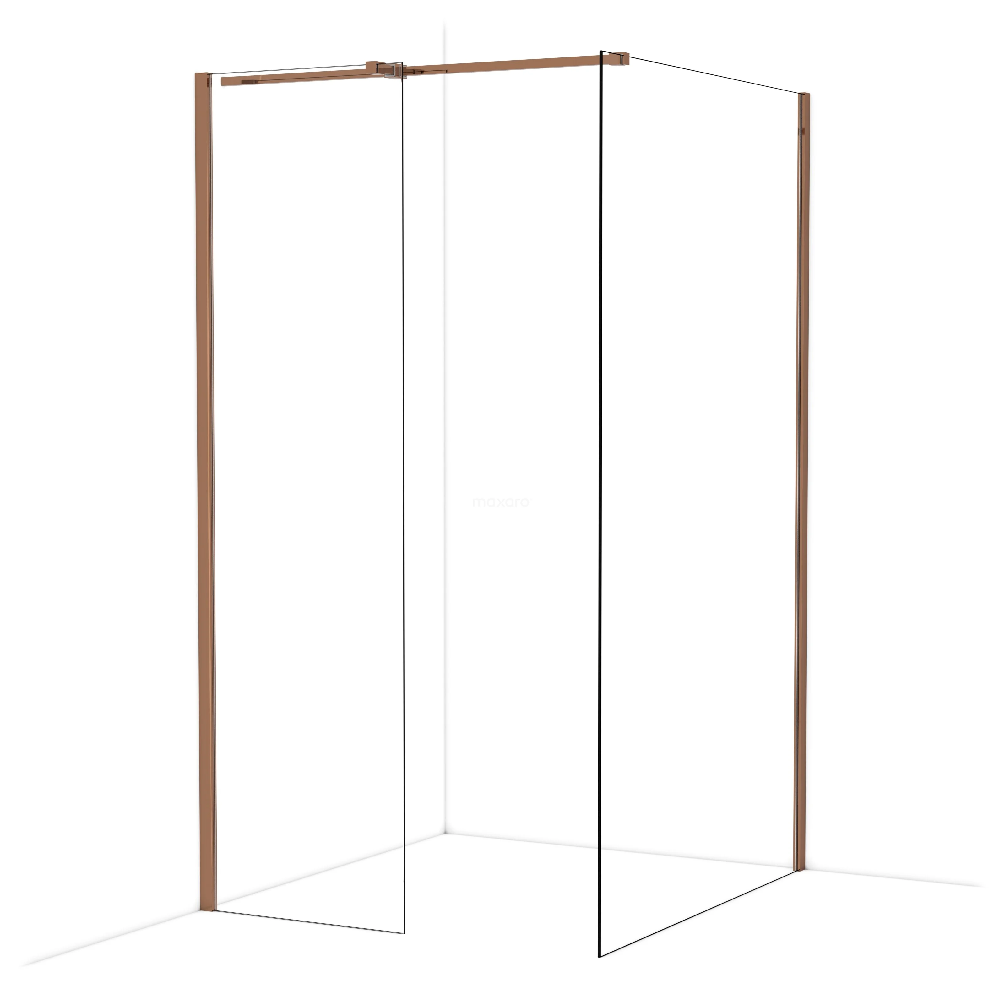 Diamond Inloopdouche | 120x60 cm Glanzend koper Helder glas 2 vaste wanden