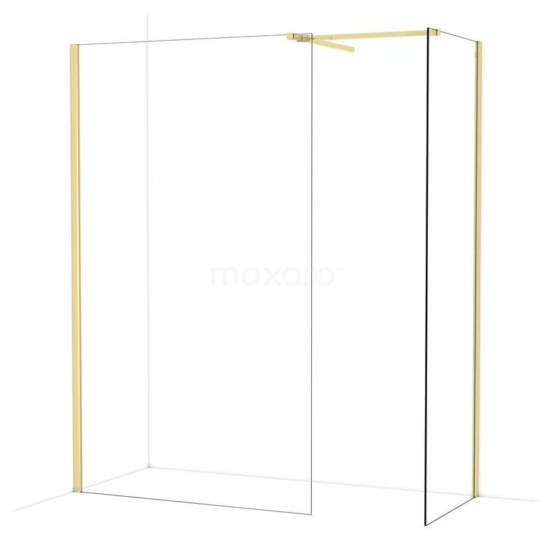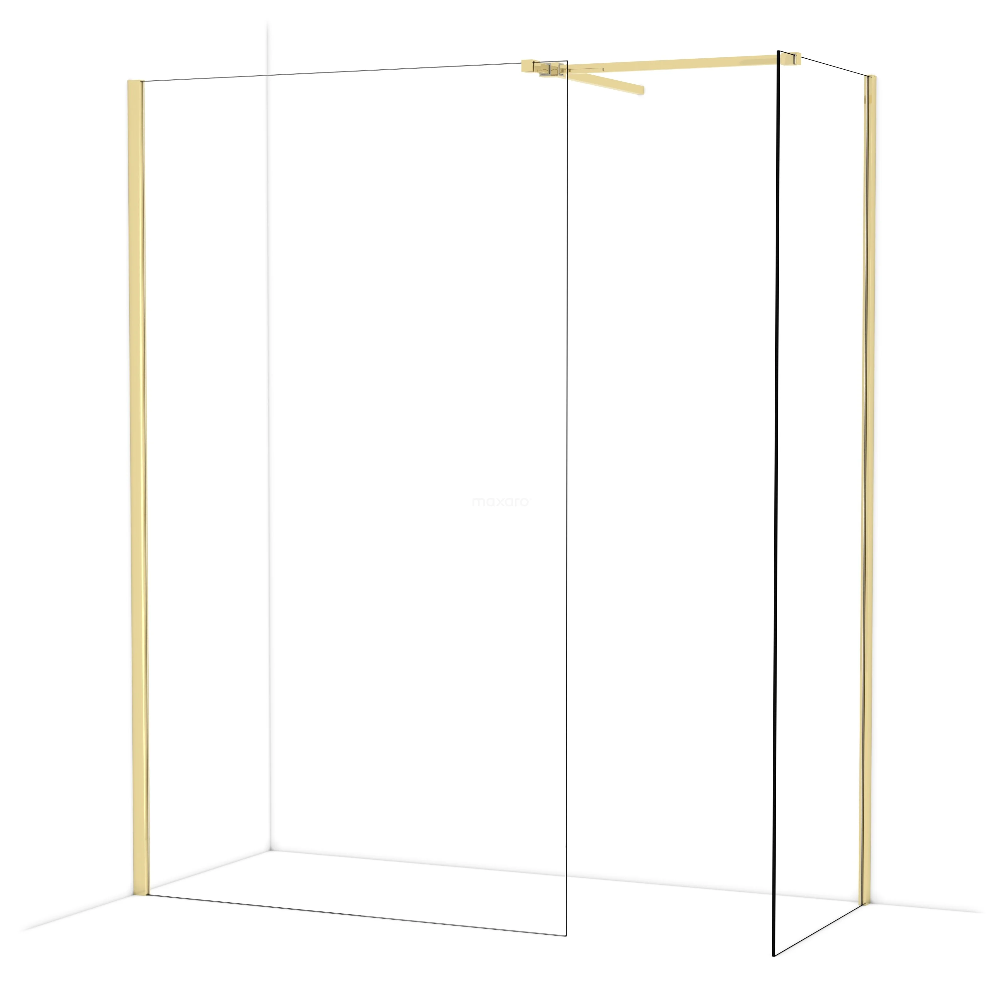 Diamond Inloopdouche | 120x70 cm Glanzend lichtgoud Helder glas 2 vaste wanden