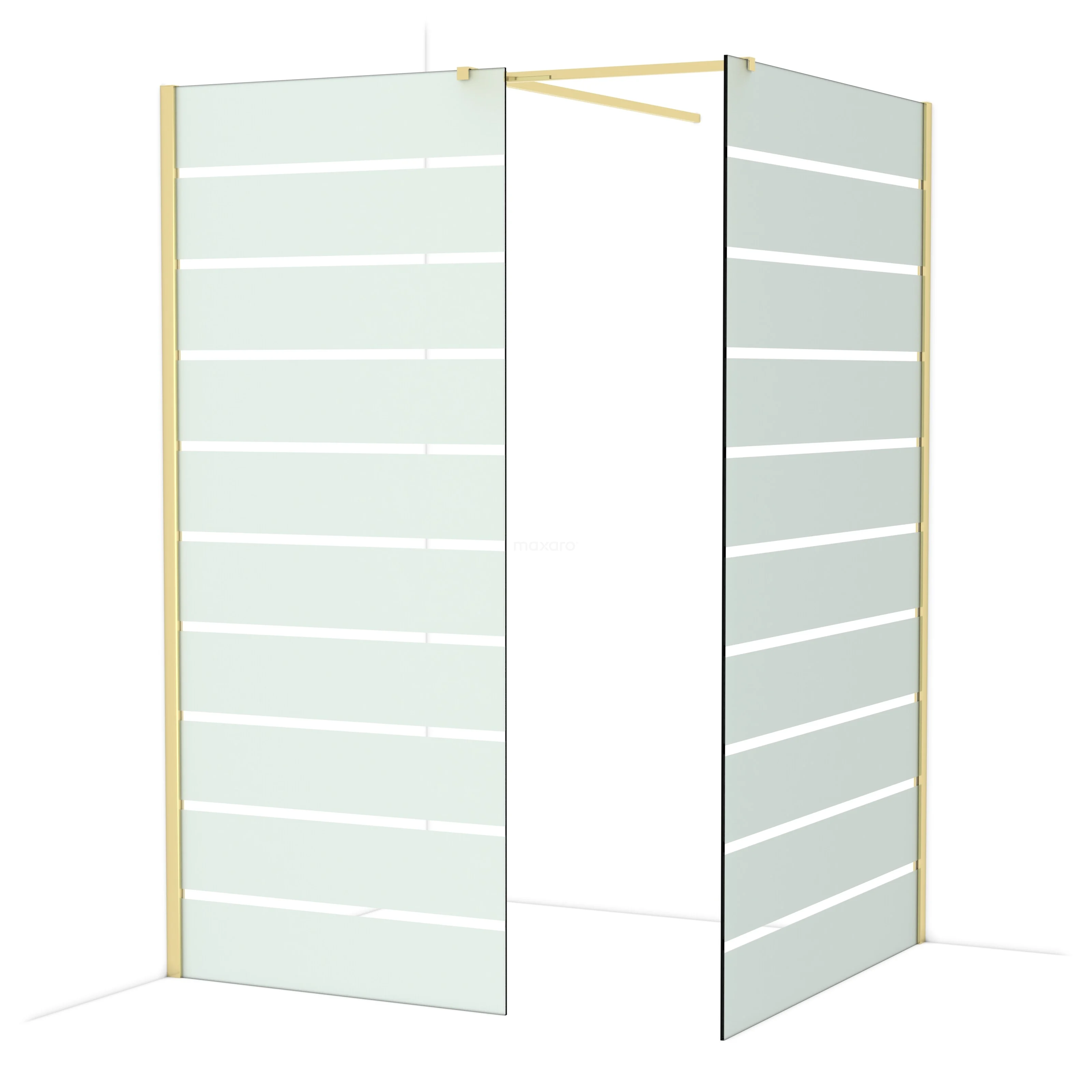 Diamond Inloopdouche | 120x90 cm Glanzend lichtgoud Helder met matte strepen 2 vaste wanden