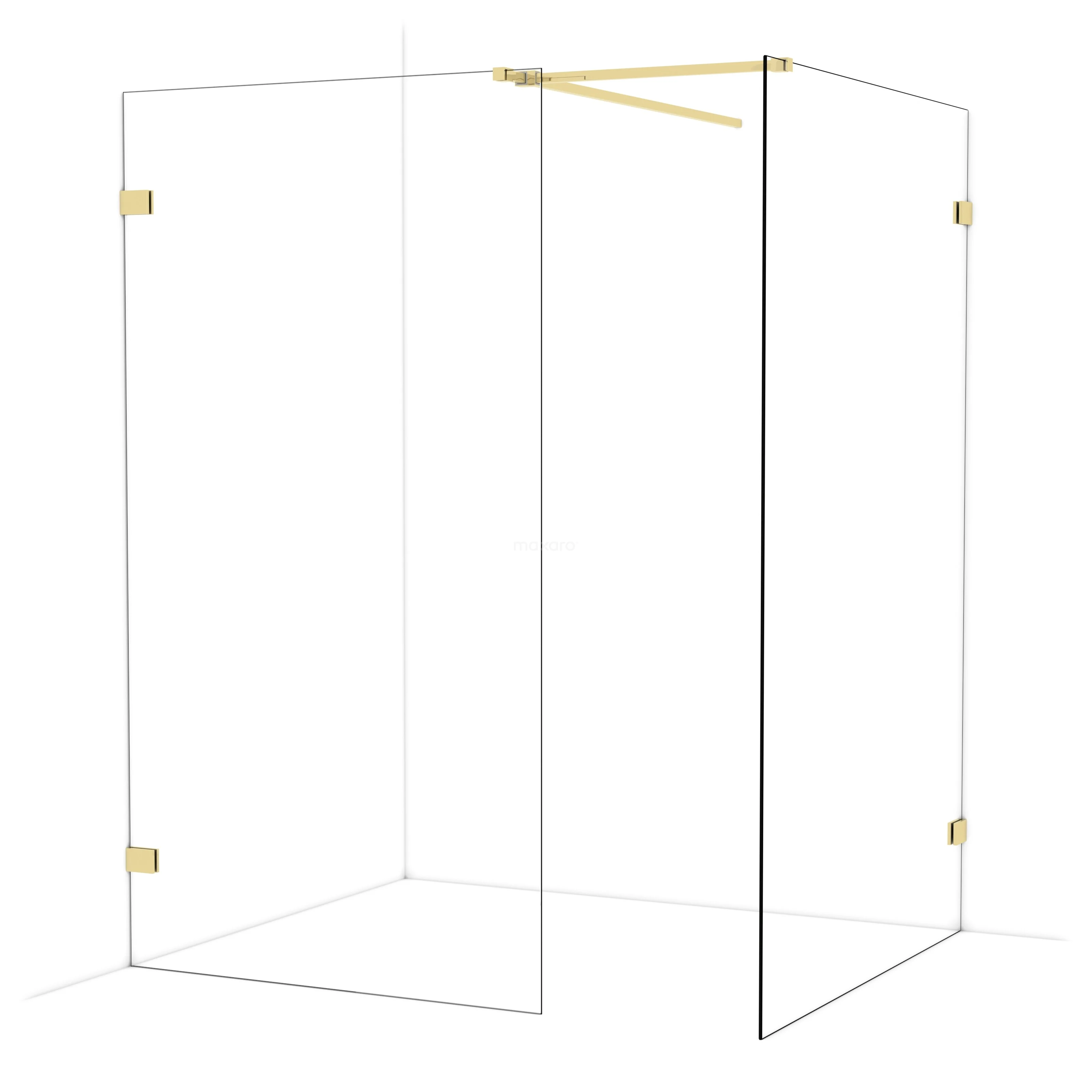 Diamond Inloopdouche | 130x110 cm Glanzend lichtgoud Helder glas 2 vaste wanden