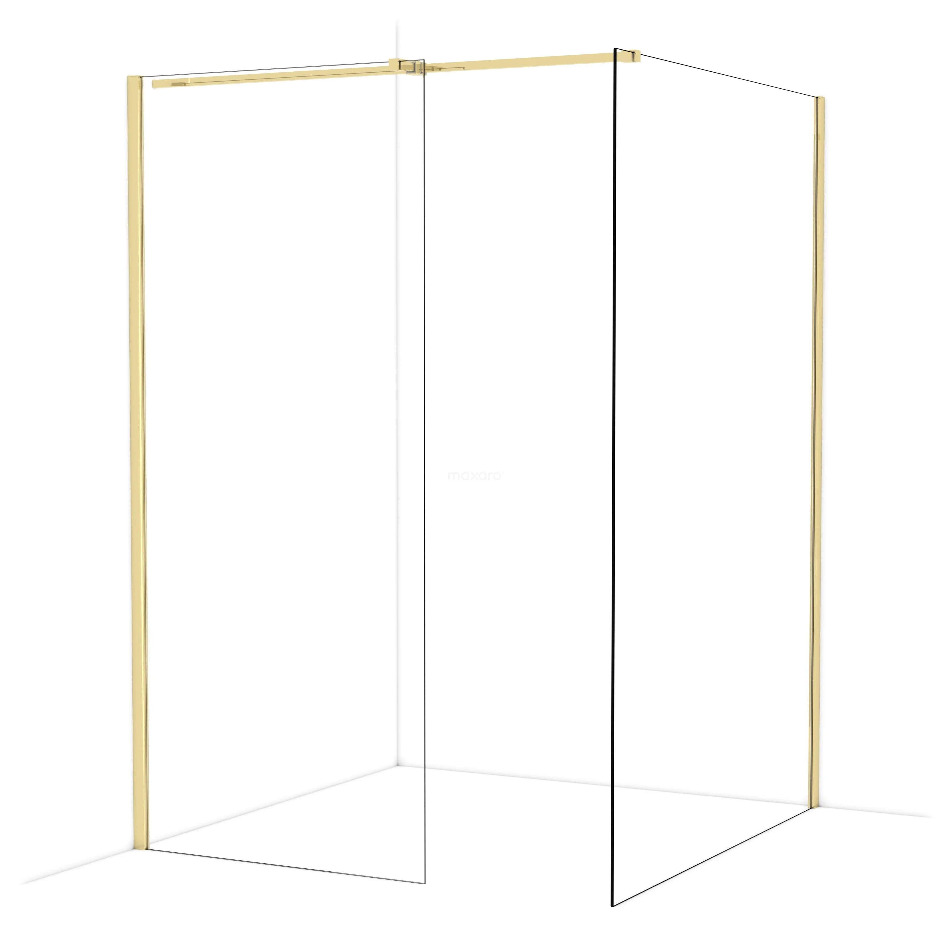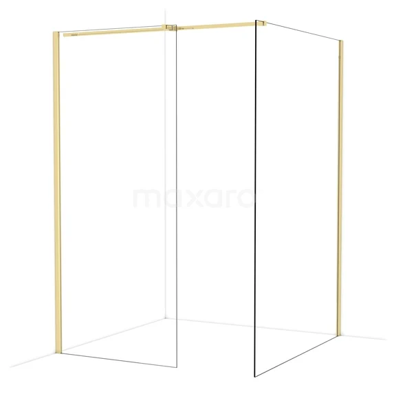 Diamond Inloopdouche | 140x90 cm Glanzend lichtgoud Helder glas 2 vaste wanden