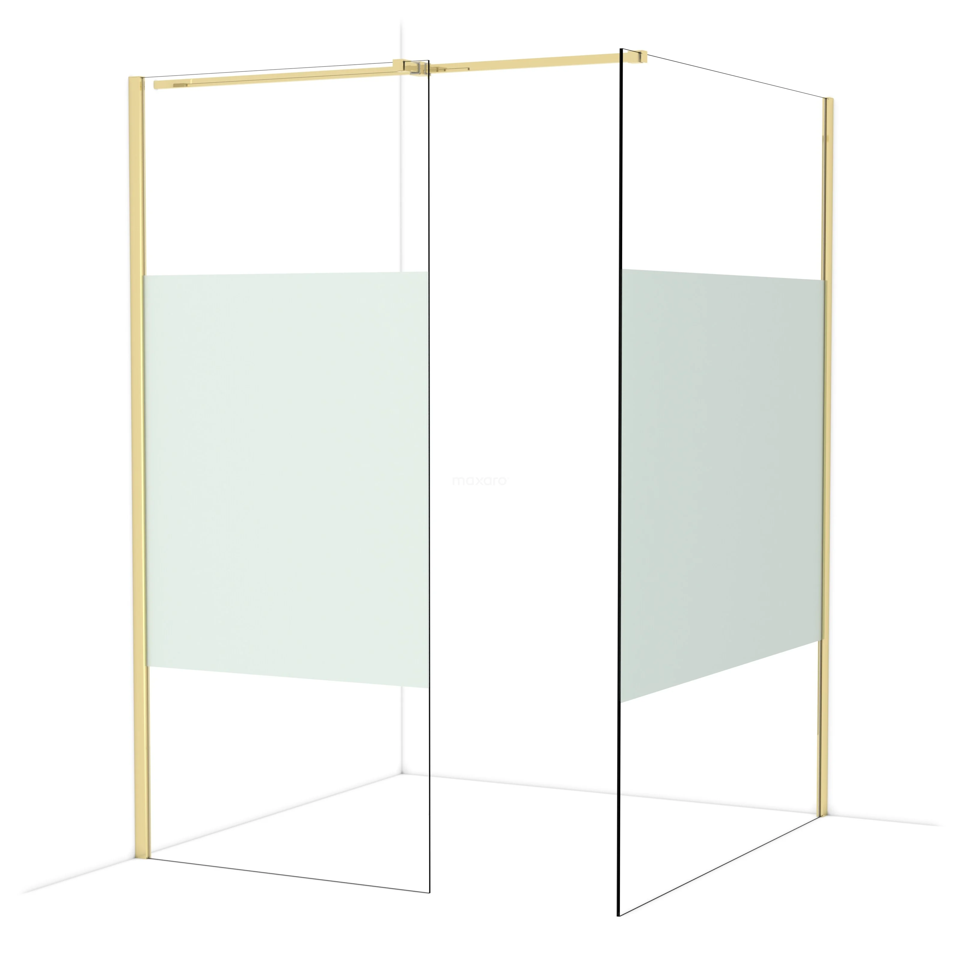 Diamond Inloopdouche | 140x90 cm Glanzend lichtgoud Helder met matte strook 2 vaste wanden