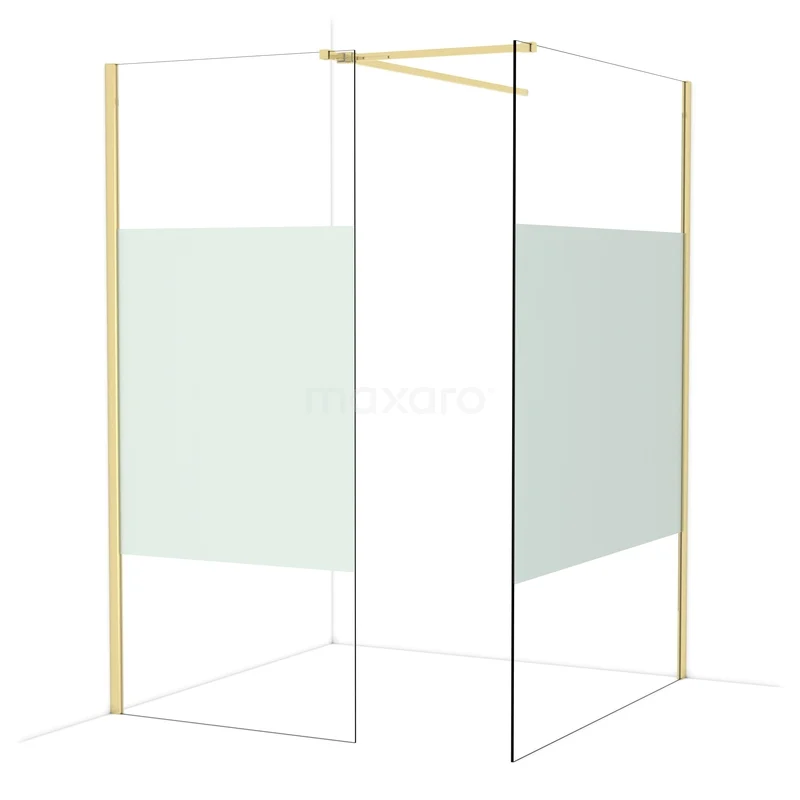 Diamond Inloopdouche | 140x90 cm Glanzend lichtgoud Helder met matte strook 2 vaste wanden