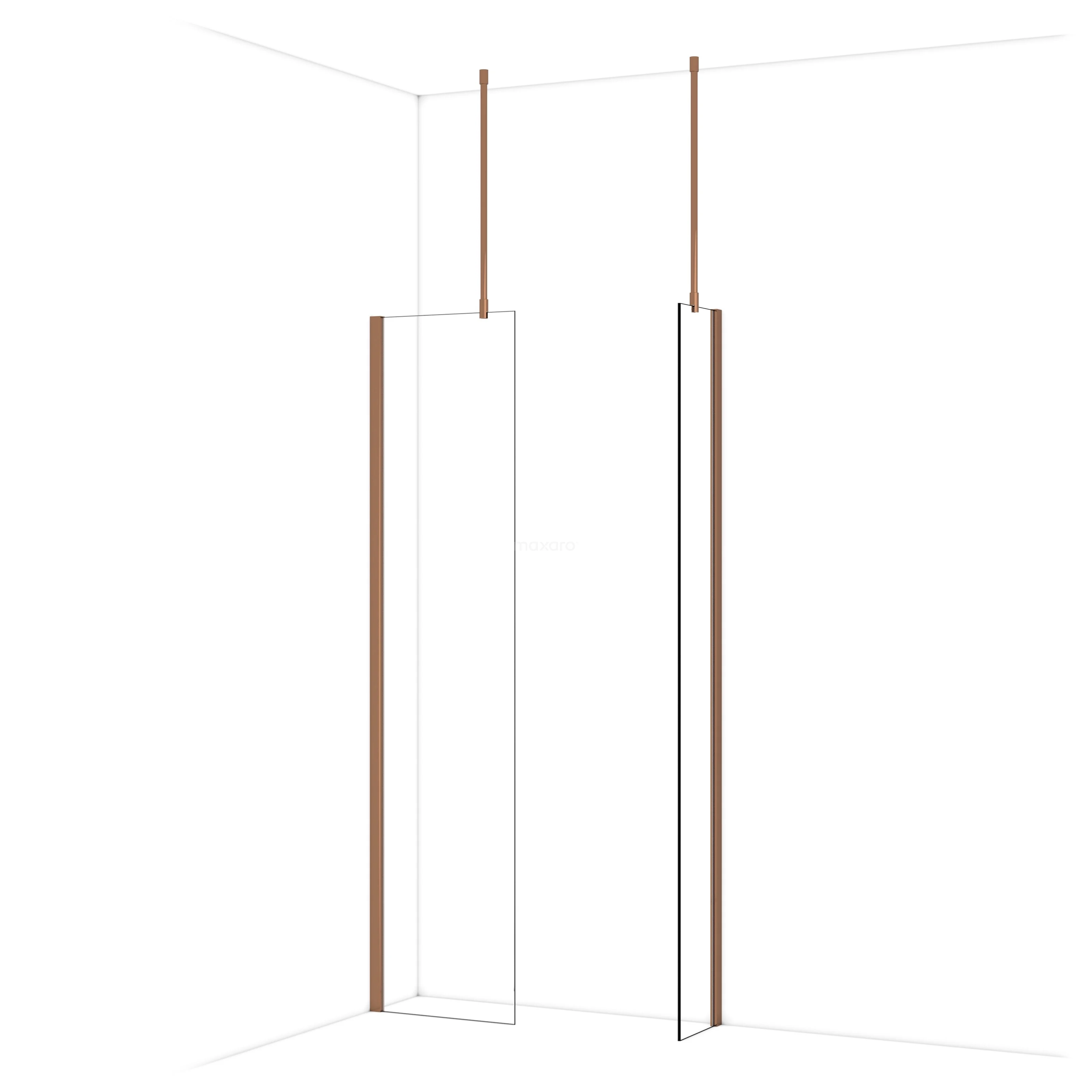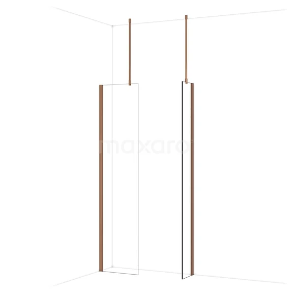 Diamond Inloopdouche | 50x30 cm Glanzend koper Helder glas 2 vaste wanden